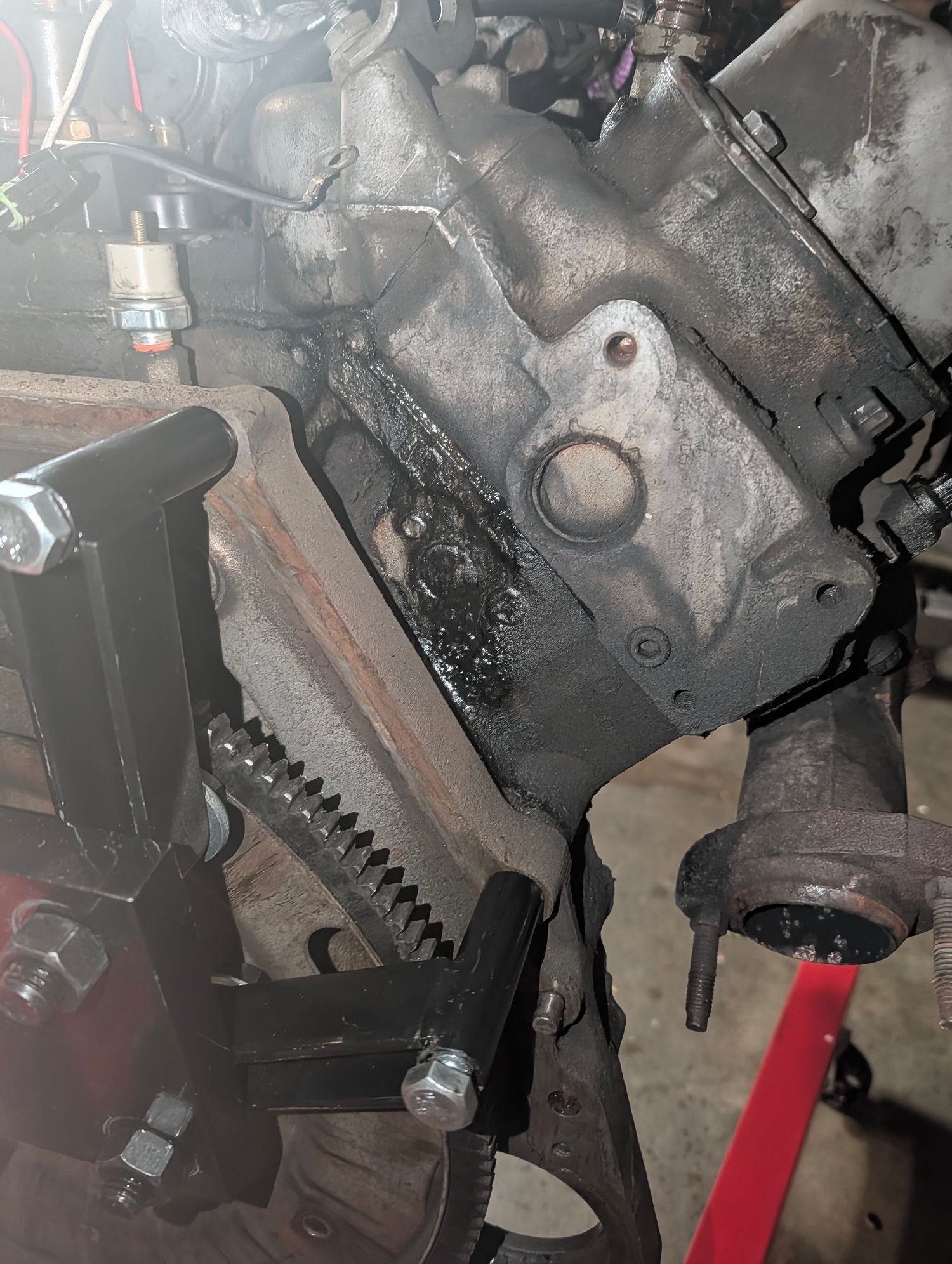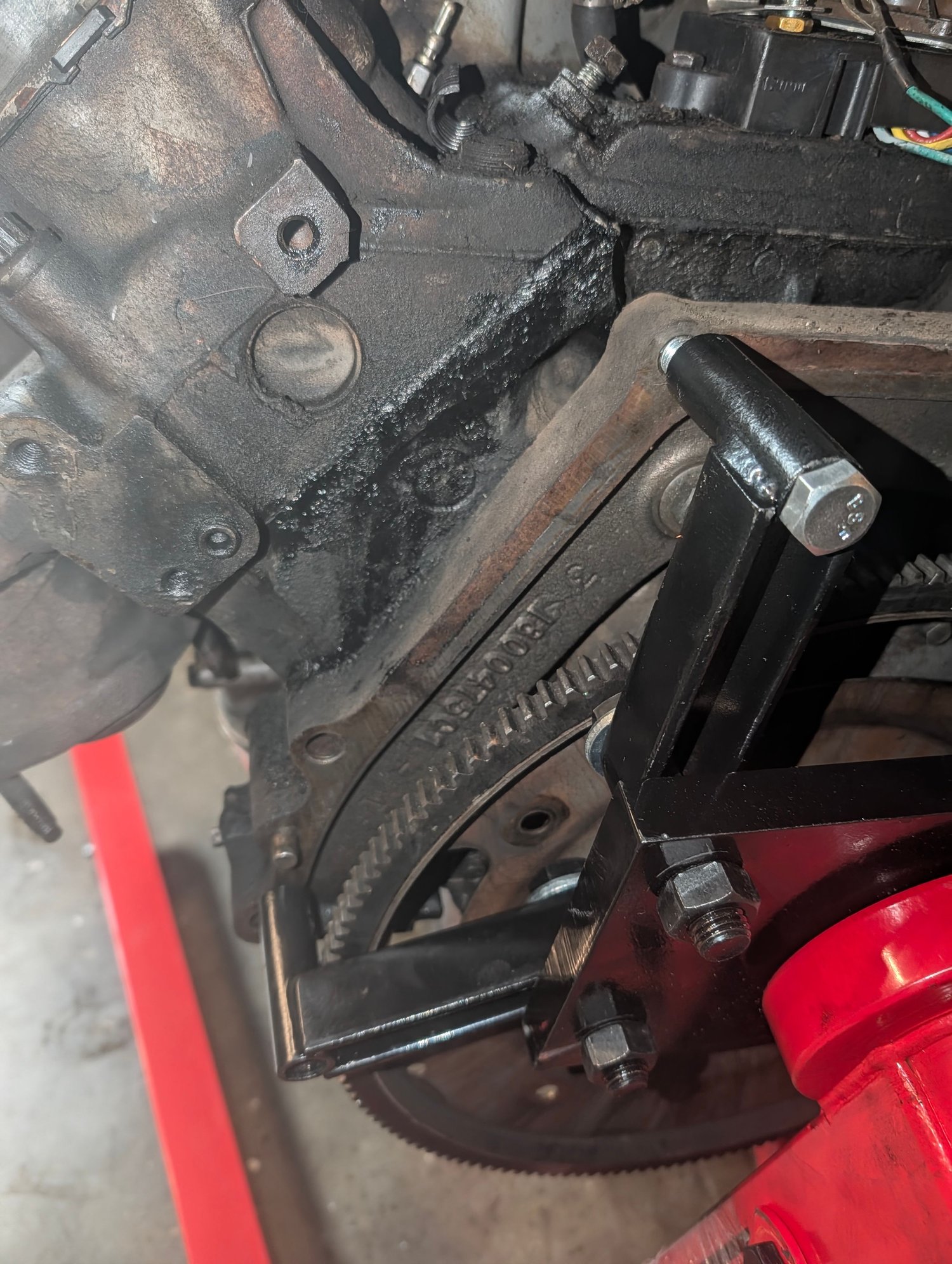 1) I didn't remove the flex plate and was wondering why the engine stand plate was making weird contact with the flex plate. I guess moving that out of the way and remounting wont be too bad now. 2) I forgot to detach the exhaust bolts from the passenger side and kept wondering wth was keeping the engine from moving forward when it was on the hoist. 3) I had left the starter attached (without bolts) so it wouldn't get puddled on with the rain from yesterday and starting lifting the engine with that attached..yeah no bueno there. 4) The strap I used to lift the engine was way too long at first and this caused really bad contact between the engine and trans cooler, which is positively gone now..oh well. I learned a lot so far..