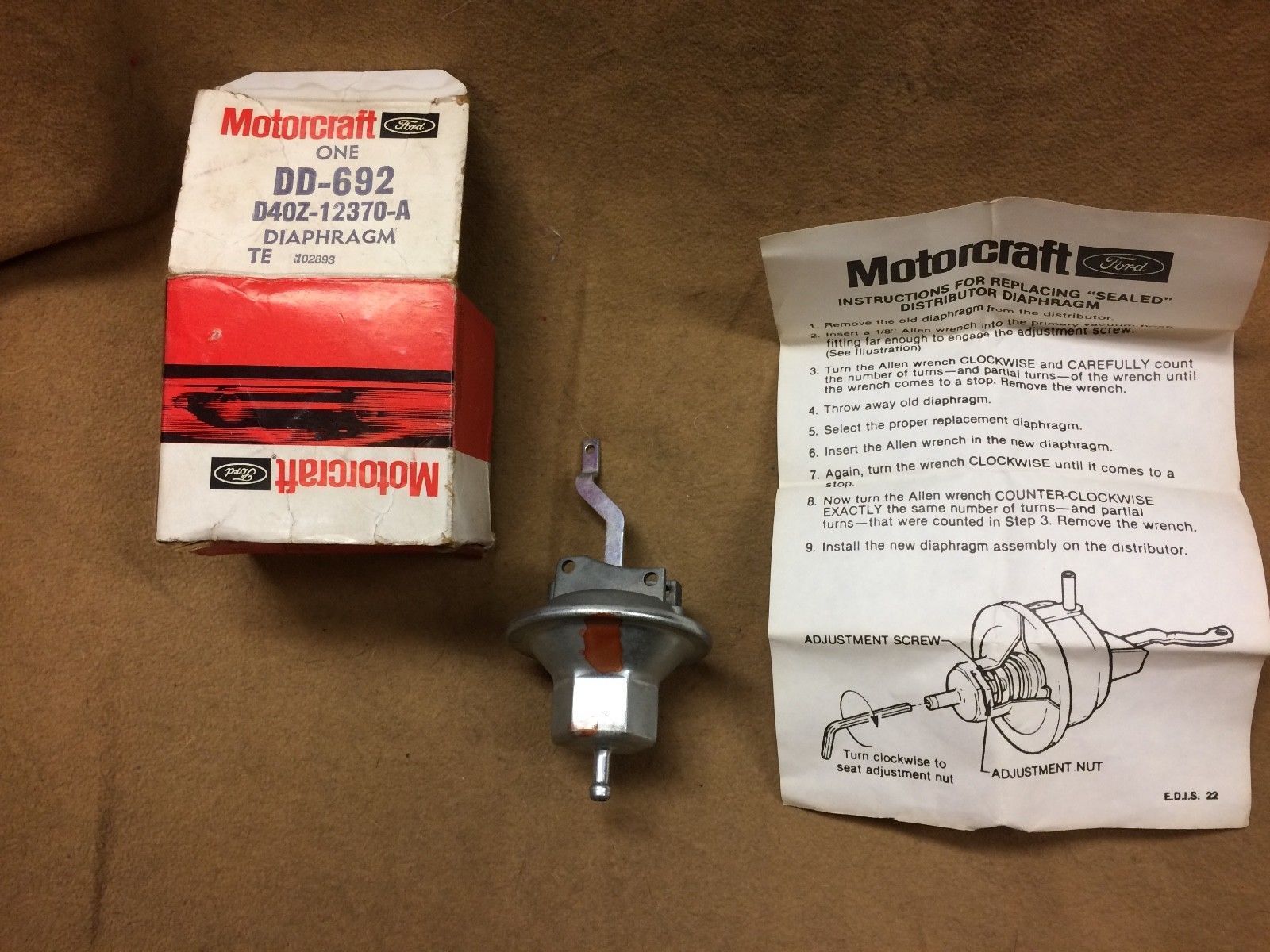 This period VAC ADV was a one-fit-all as the diaphragms were calibrated to each engine emissions calibration and FORD released this service replacement style to fit most all applications (as was also done with EGR VALVES of the period). There are also aftermarket diaphrams (HP) to control vacuum advance but one would assume the DIST mechanical curve is pre-EGR.