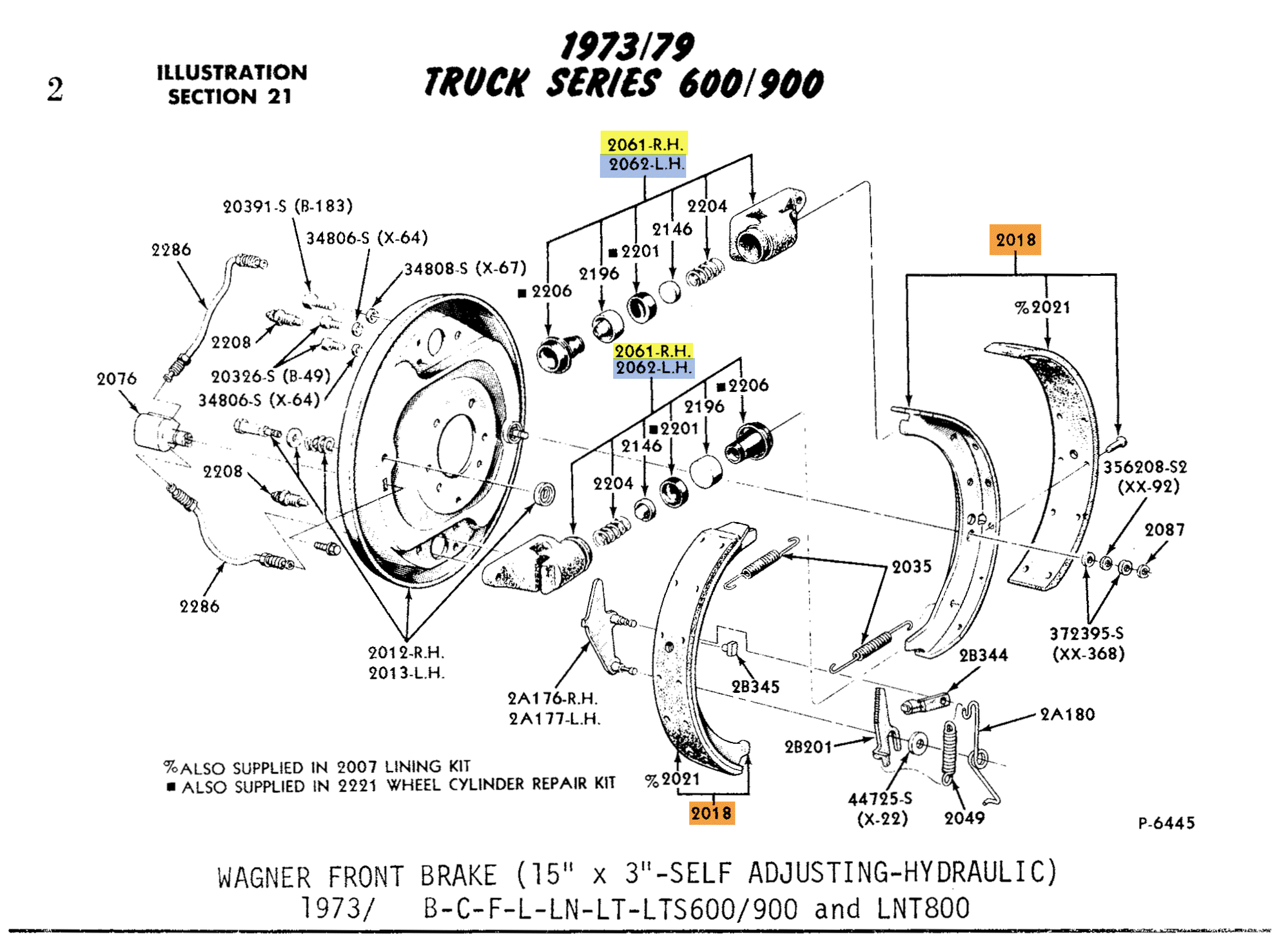 Wheel cylinder base number: 2061 (RH), 2062 (LH)