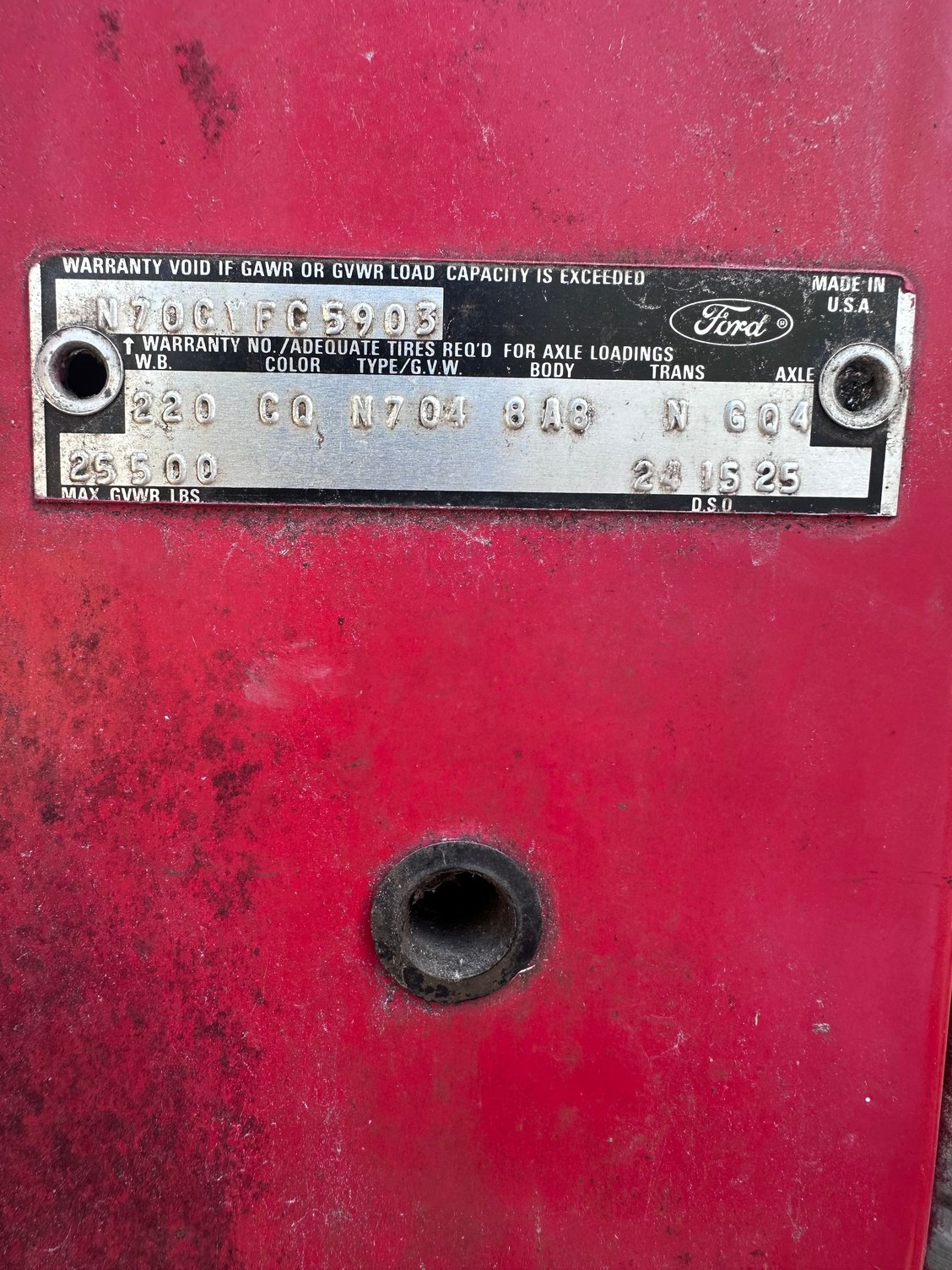A 1979 Ford F500 VIN (typically 11 characters, found on the driver's door tag or frame) decodes to reveal the manufacturer, series (F50 = F500), engine, assembly plant, and production numbers. Key indicators for 1979 include a "X" in the first position (if built in Canada) or numbers for US, and the 4th-6th digits specifying the F500 series.