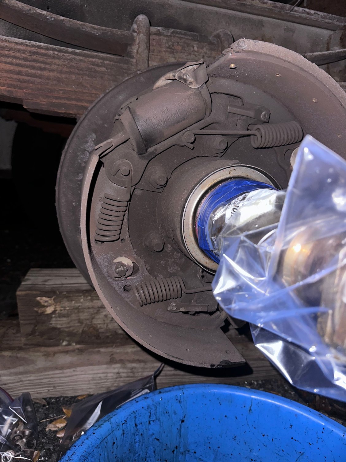 i got around to pulling the rear drum off passenger side today . I’m on the hunt for a 15x7” brake shoes .