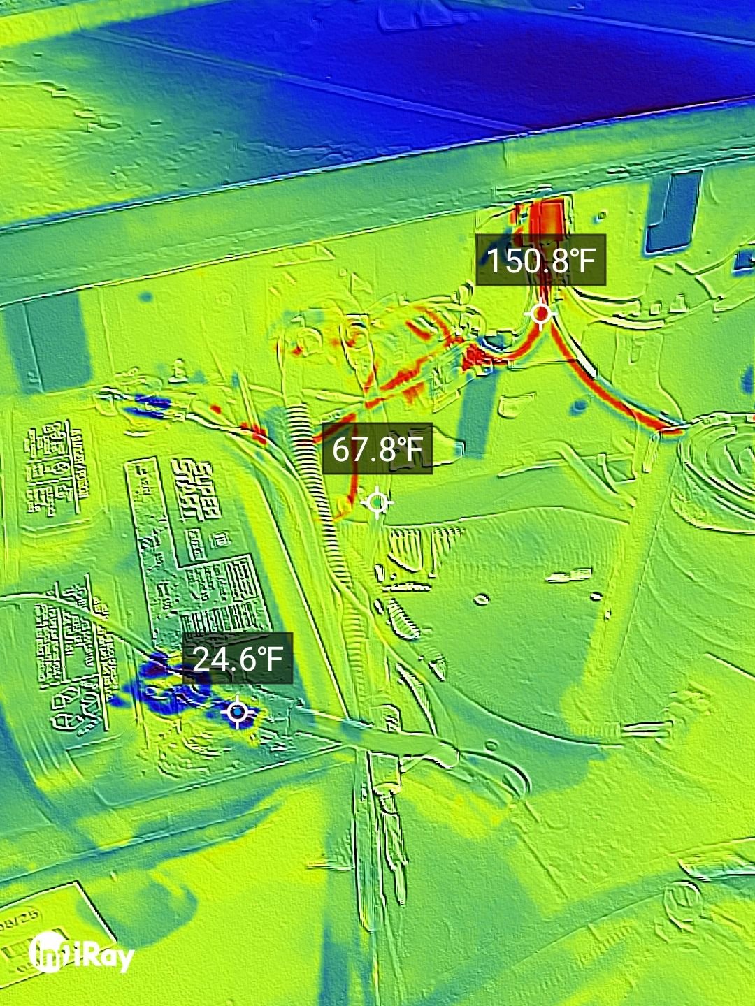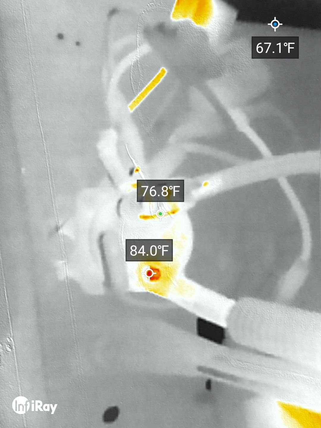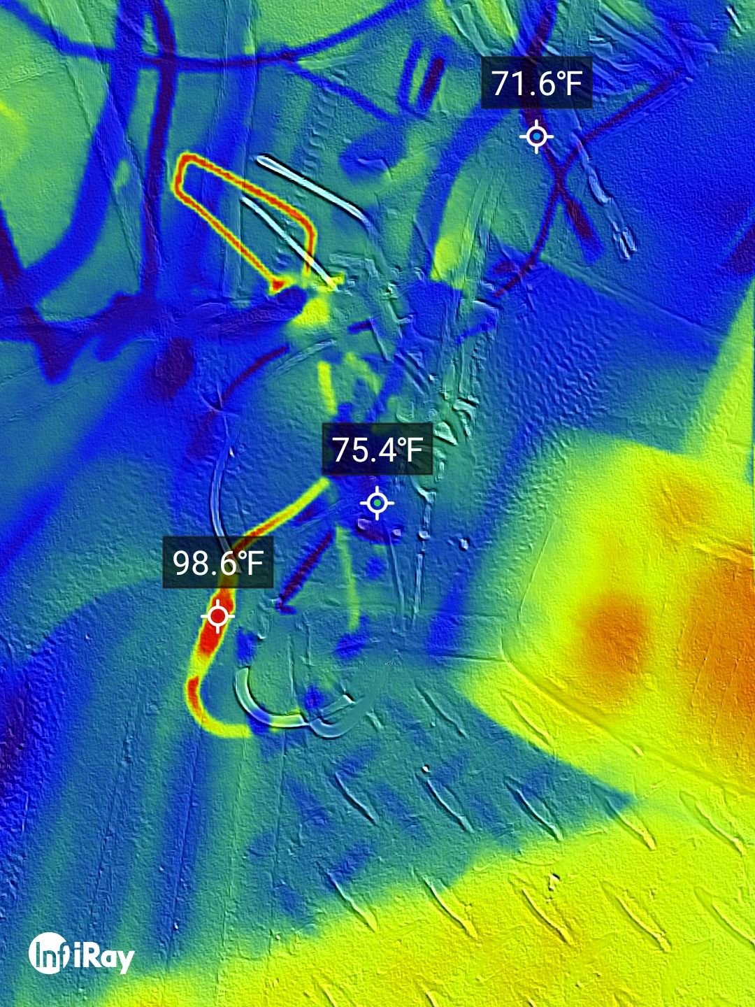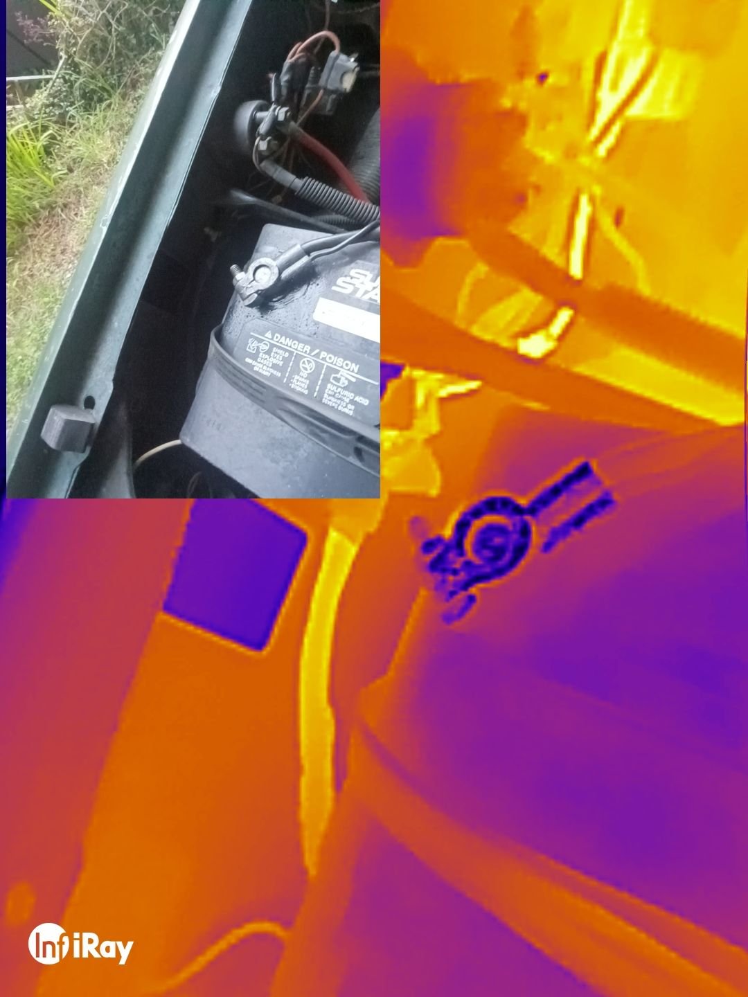 I forgot to note, A while ago I had used a I used an inertia switch from my '91 F250 and still the wires got hot. Today i used a paperclip to bypass the switch and the wires still got hot, but the thermal camera showed one wire heating up before the other, at the point of the butt connector. So I shortened the wire eliminating two splices, used solder butt connectors on each wire under the inertia switch, and STILL it gets hot.