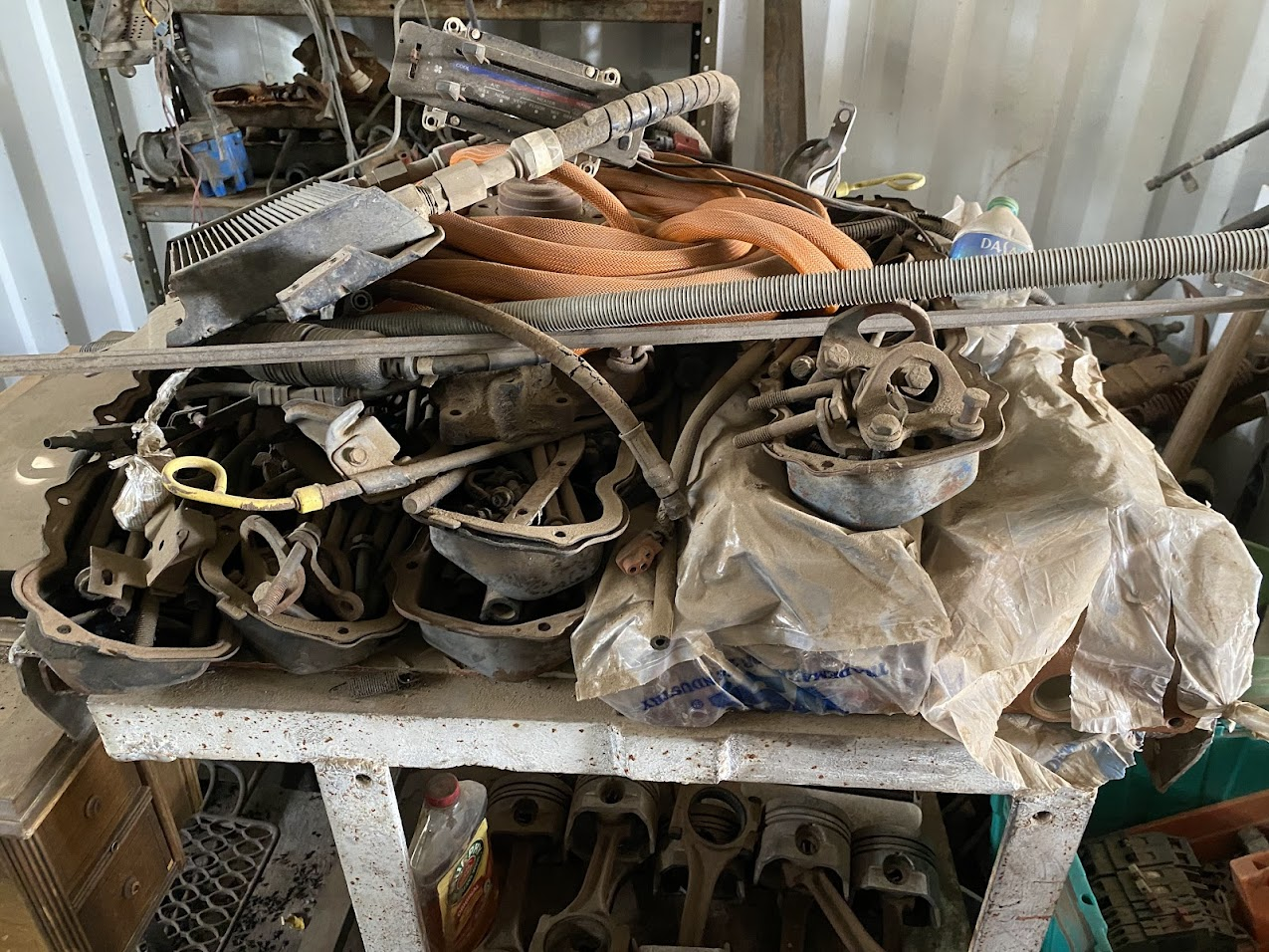 one of my trucks. His 85 has alot of parts my 84 needs so its going to be a parts vehicle for me. In the bags on the table is rebuild heads for that 7.3 IDI on the stand as well.