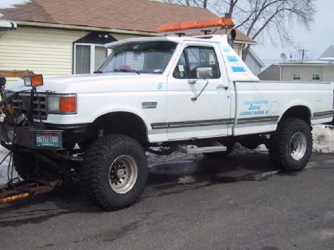 this is a picture of the truck waiting to go out plowing snow when it was still fairly good shape before the bed and cab rotted off it, i think it was 16 years old with around 350-375 k miles on it at the time. it now has a little over 496,000 miles on it and is waiting for weather to warm up so i can put the new cab on it