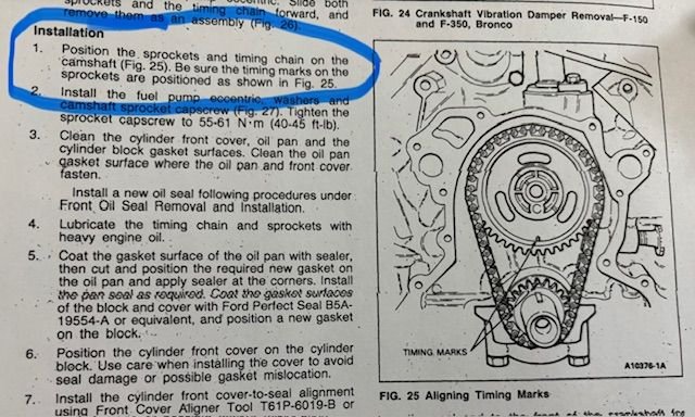 Your keyway goes straight up, and your dot goes straight down for your 351