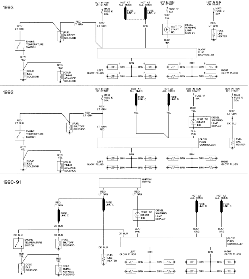 OK, so here is how I would do it. Looking at the schematic again, it's handy that the line goes into the FSS first and the rest after. Let's hope the older truck is wired this way too. So to "fix" it, all you'd really need to do is snip the incoming FSS wire which is no longer getting 12v. Find a key in on in run source, say the radio for example and feed that into the engine bay.