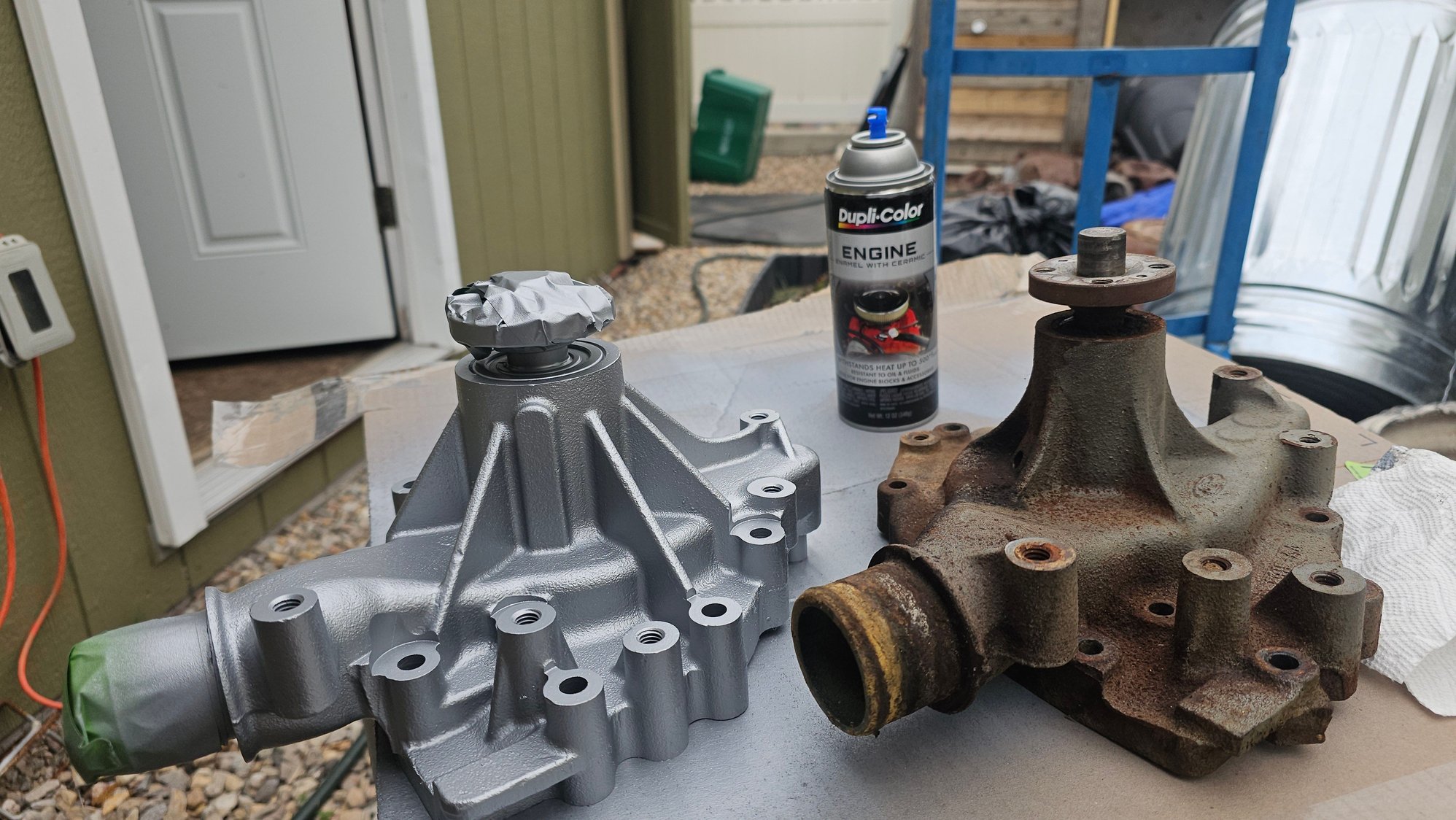 well 2 trips to napa for the accessory belt tensioner pulley still not the right one. I used VHT primer yesterday and painted it this morning but came home and the paint peeling like onion skin, primer looks good.... the only VHT colors they had was black and orange. They did have a header grey.