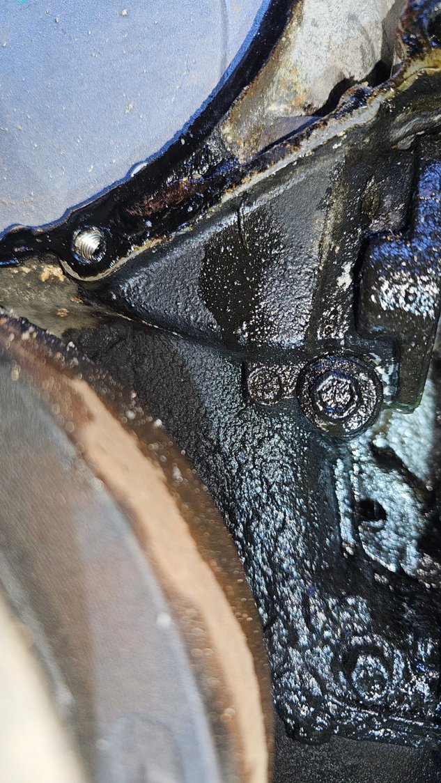 I dread the gasket where it meets the oil pan and all these layers. I did buy some permatex right stuff. Also 2 bolts would quite oily.. kind of a sludge. IF oil was leaking into the folt area its not to much more for coolant to leak over The oil and the seep residue is why I feel I better do this right. I will try to post the pic of that.