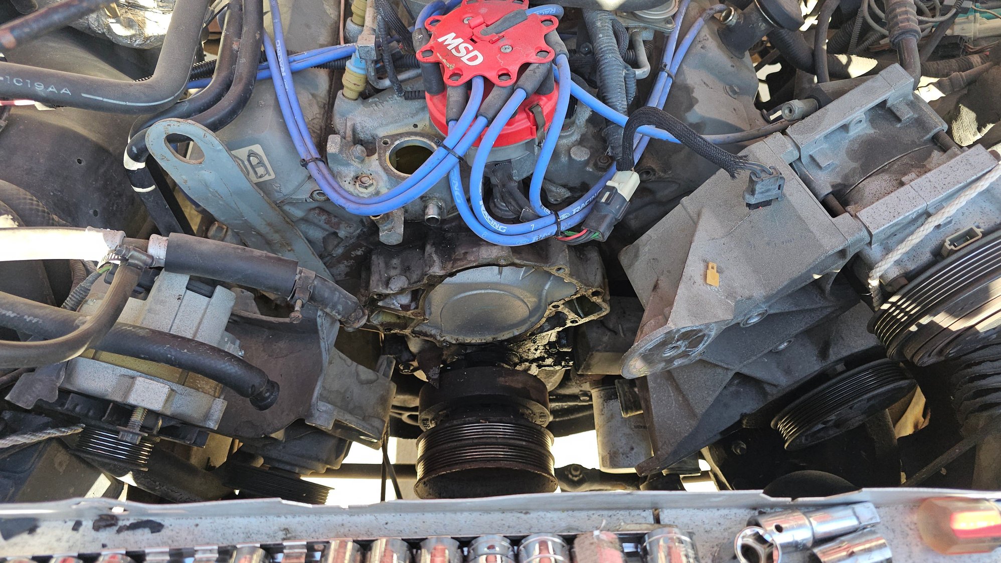 I'm thinking my oil leak was just oil slinging up from the harmonic balancer.. hopefully my new front seal will stop that.