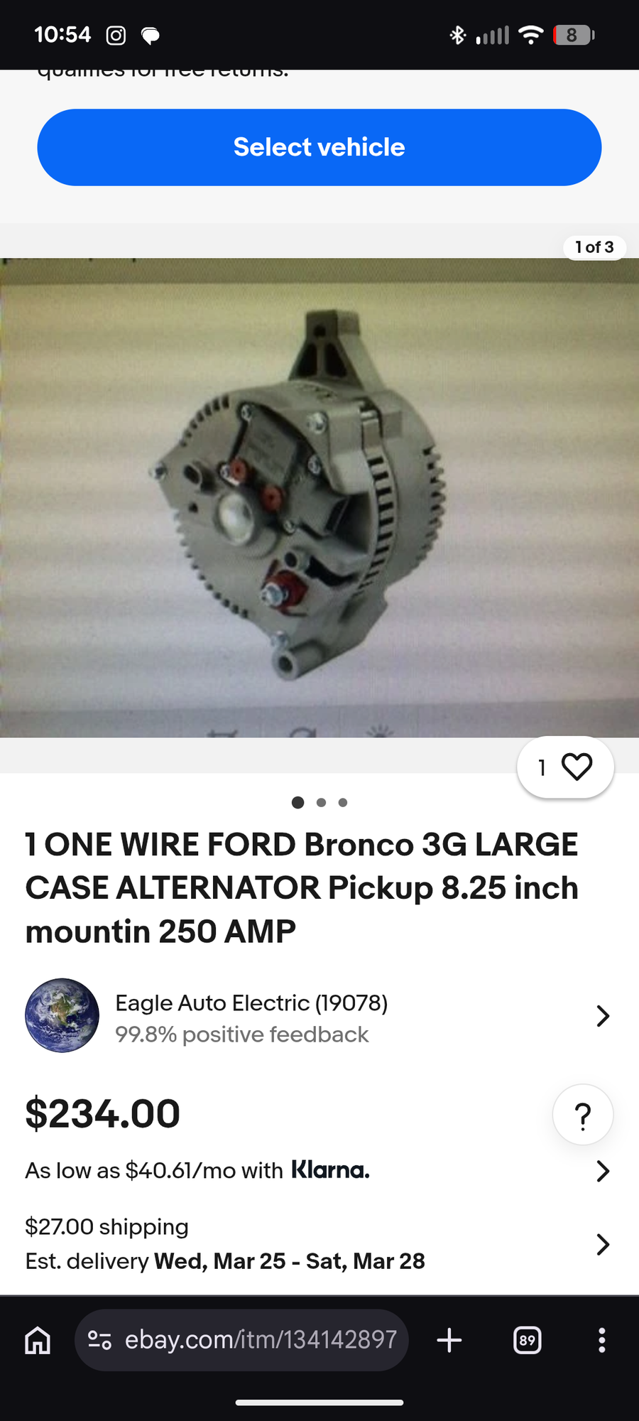 BTW, that alternator is way overpriced. Even buying a new one from the parts store is cheaper.
