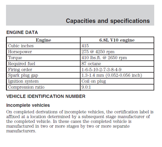 2000-2004 V-10...310 hp @4250 rpm, 425 ft/lb torque @3250 rpm (2-valve)