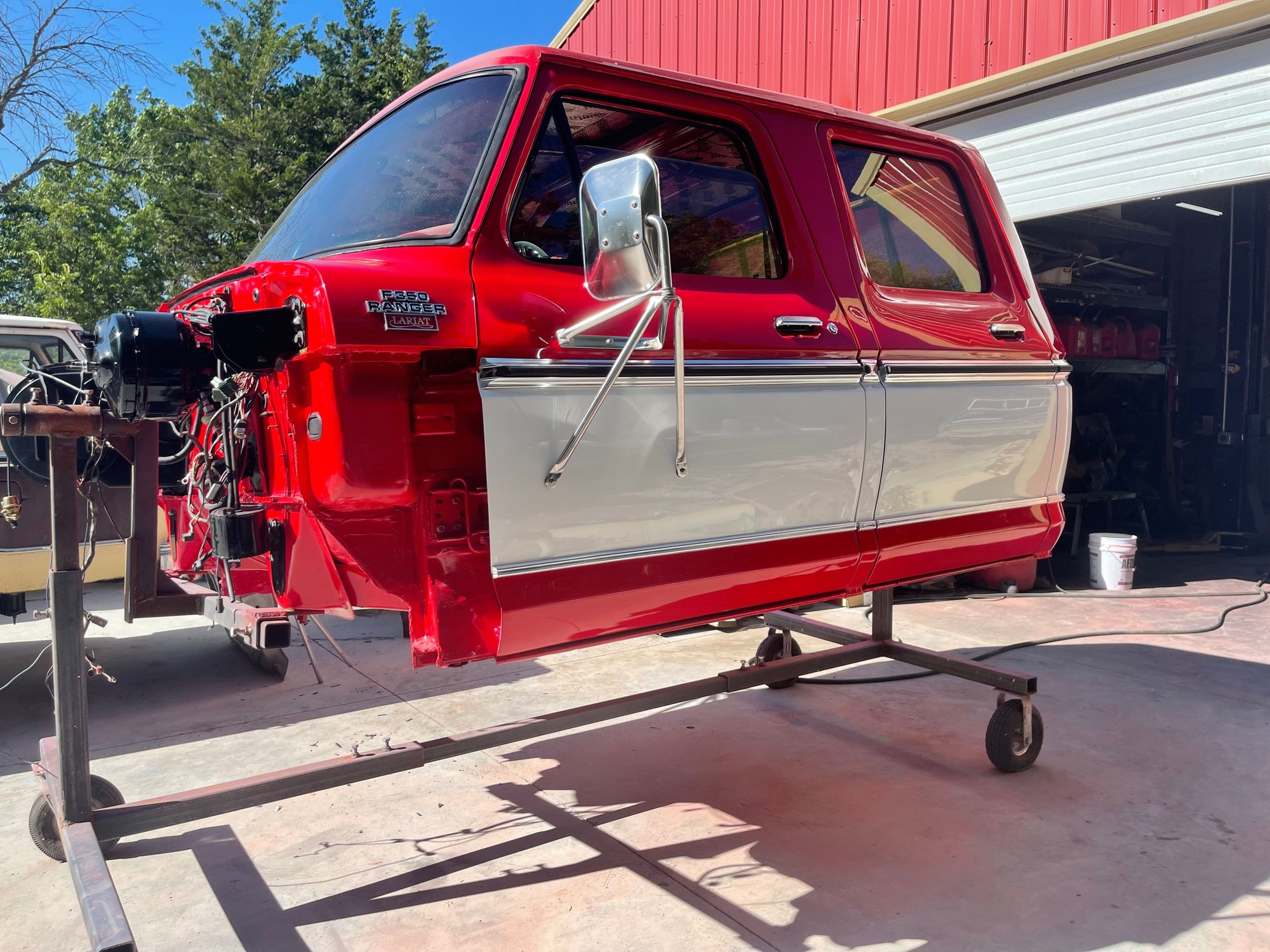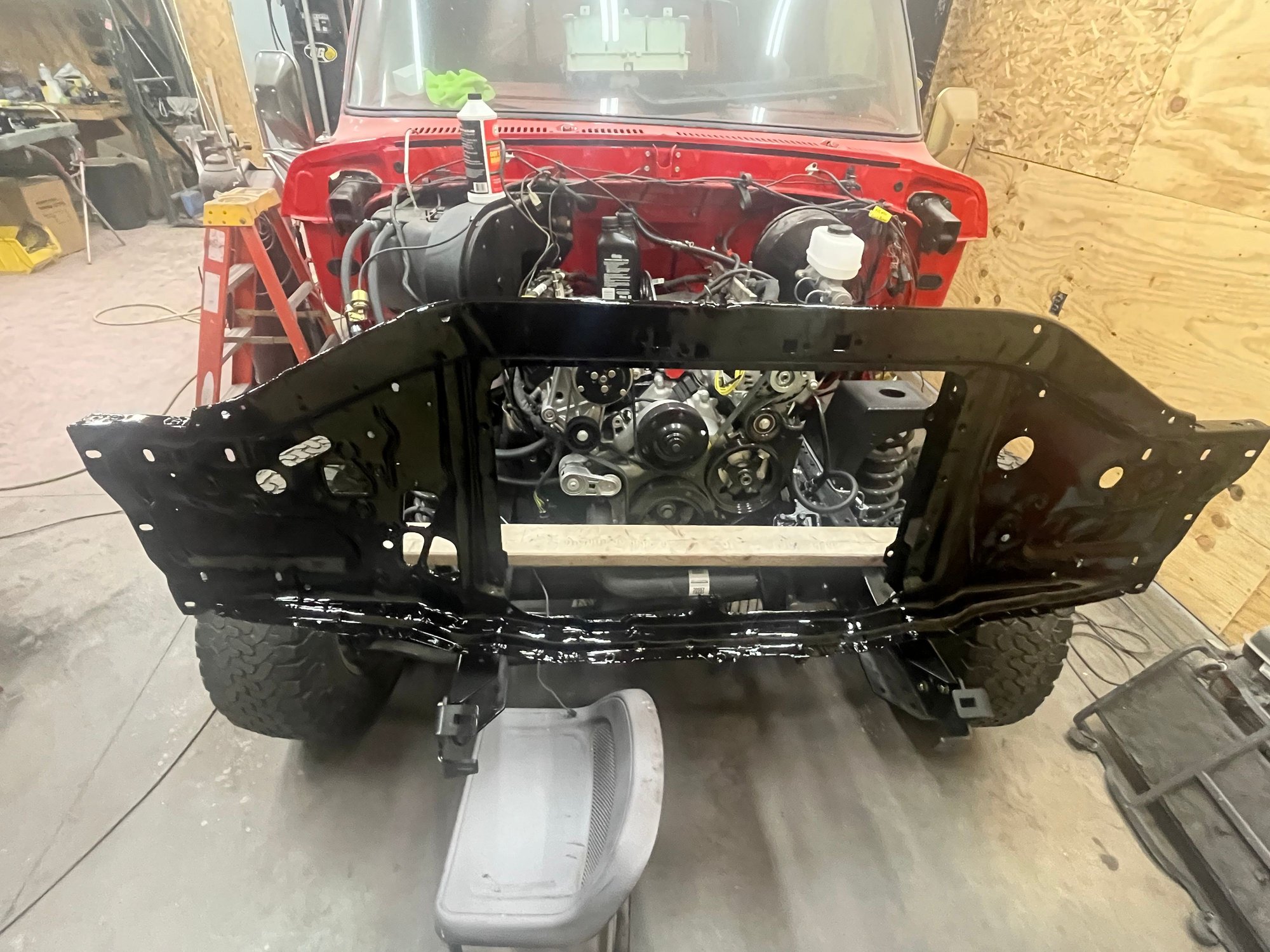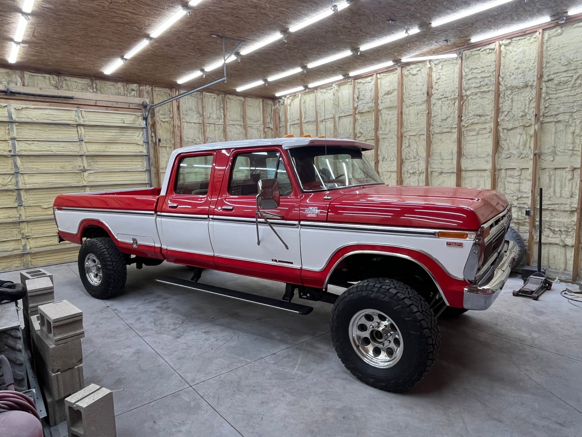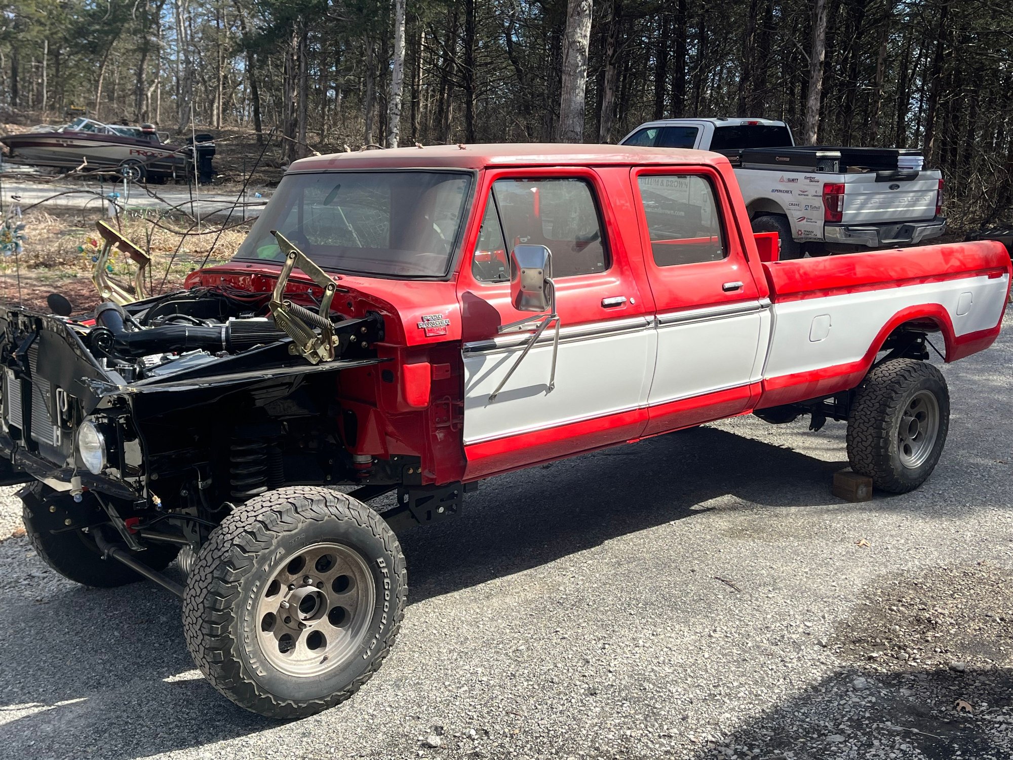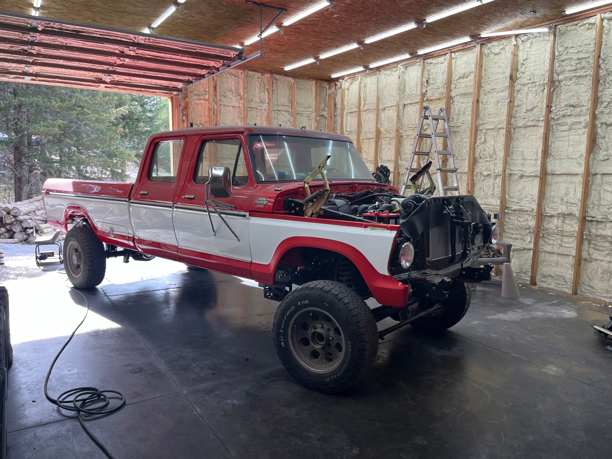 Hadn’t been on in awhile. Build is coming to a close hopefully by spring. Still looking for a few hard to find parts. Figured I would post some of the progress I have made. The rundown on the build. 2023 Ford 7.3 Godzilla with upgrades-6/R140. New takeout. ECM PATS deleted and wiring pack from Mars. New OEM manual shift transfer case for 2019 Superduty BattleBorn front 4x4 conversion and rear long spring conversion. Late model F350 axles/steering/suspension 88 F350 cab and chassis rear plastic fuel tank/crossmembers. New steel 1991 F350 front tank with modified supports. Custom driveshafts Tilt/Cruise/ security group/ lighting group/ Factory 1978 CB radio,Factory AM/FM stereo, factory rear window defrost. Lariat converted door panels and headliner. Dakota Dash 2023 Supeduty new take off power deployed running board. Power windows/power locks 2020 super duty brake booster/master