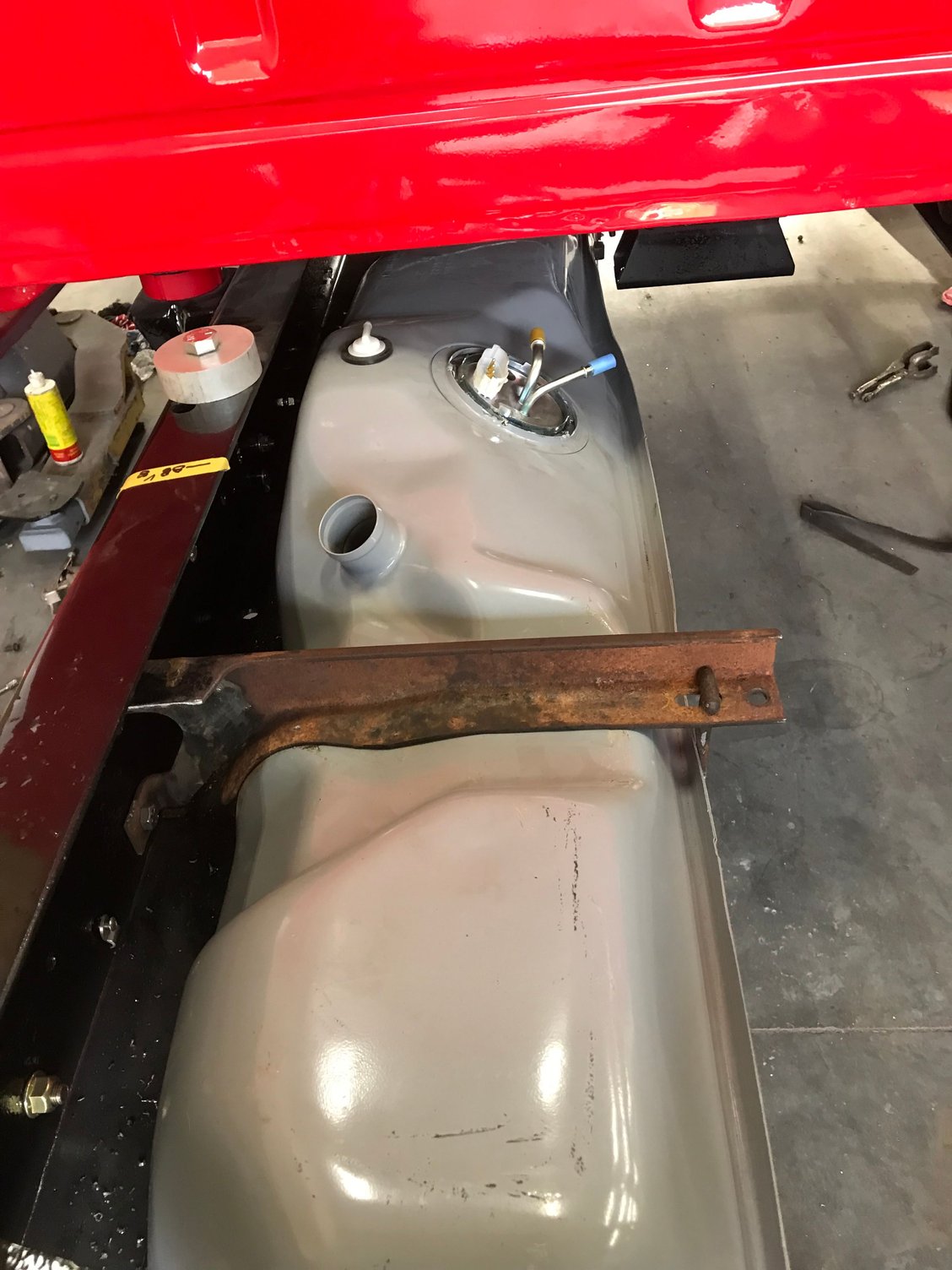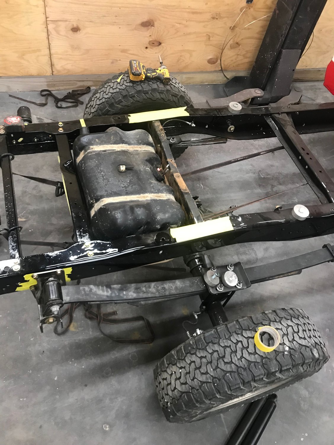 I wanted a belly tank, so sourced one from a 2wd shortbed Crew and moved the frame brackets over to my chassis.