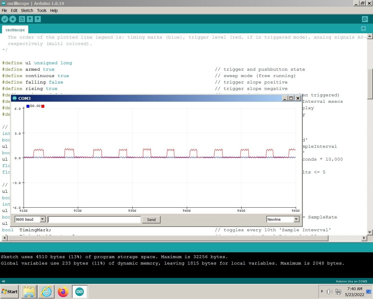 Well , that was a fail. The truck ran great on E85. Had no serious pings with premium and was thrashing on E10. I plugged in that emulator and it barely ran, would not idle, erratic... no go. Simply unplugged it ran about the same so I'm guessing the computer is just kicking out the signal. I slapped together a quick oscilloscope using an arduino and the computer monitor. I'm well over my head but I think I have the blue square wave notches set to 4milliseconds. I think the heartbeat is out of time.