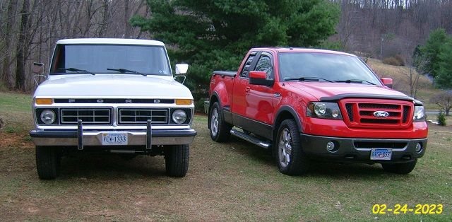 The Gray one is a 2007 FX2 SPORT. During COVID the original 5.4 sucked a spark plug, so I bought a Jasper 5.4 replacement and had our mechanic do the install. It now has about 145K miles on it. The blue '56 has been transformed over the 51 years I've owned it from Gallo Vineyards Foreman's bone stock work truck to a cross country cruiser. I've dreamed of this truck since the 2nd grade. A testament to never giving up on your dreams. 😃👍