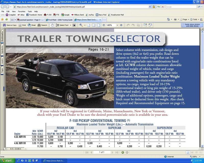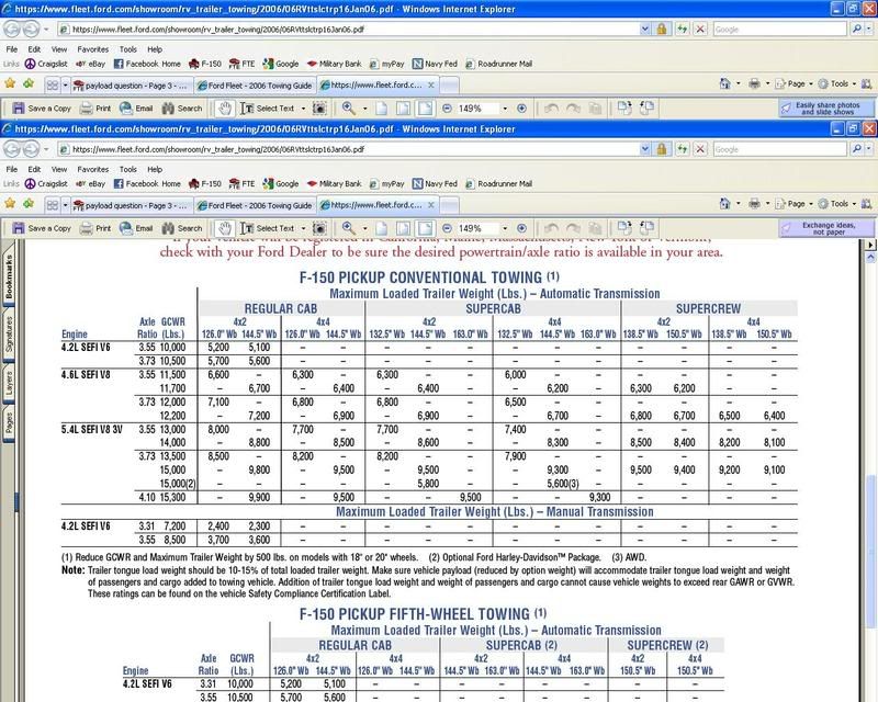 Fords Towing Guide...lets you select your Year of F-150 and provides all the relevant towing/loading info for that year