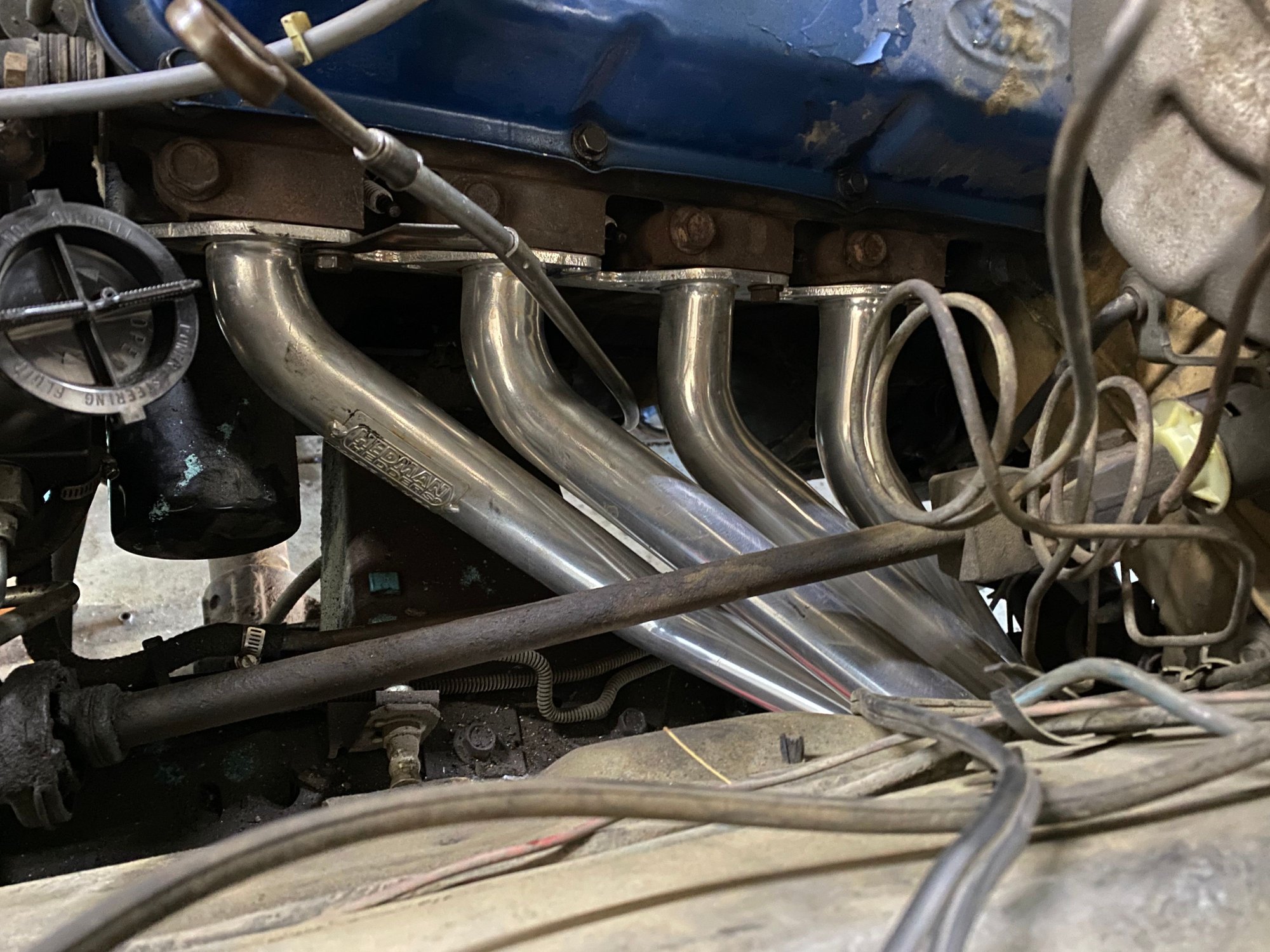 I have the fenderwell exit headers and a dismantled 460, but that's as far as I have gone with an engine swap. I haven't had the cash to do anything on this and probably won't for a while. There is a local guy selling new parts for a 400 pretty cheap though. I was really wanting to go EFI, but seem to be getting the bug to go with a 6bt cummins.