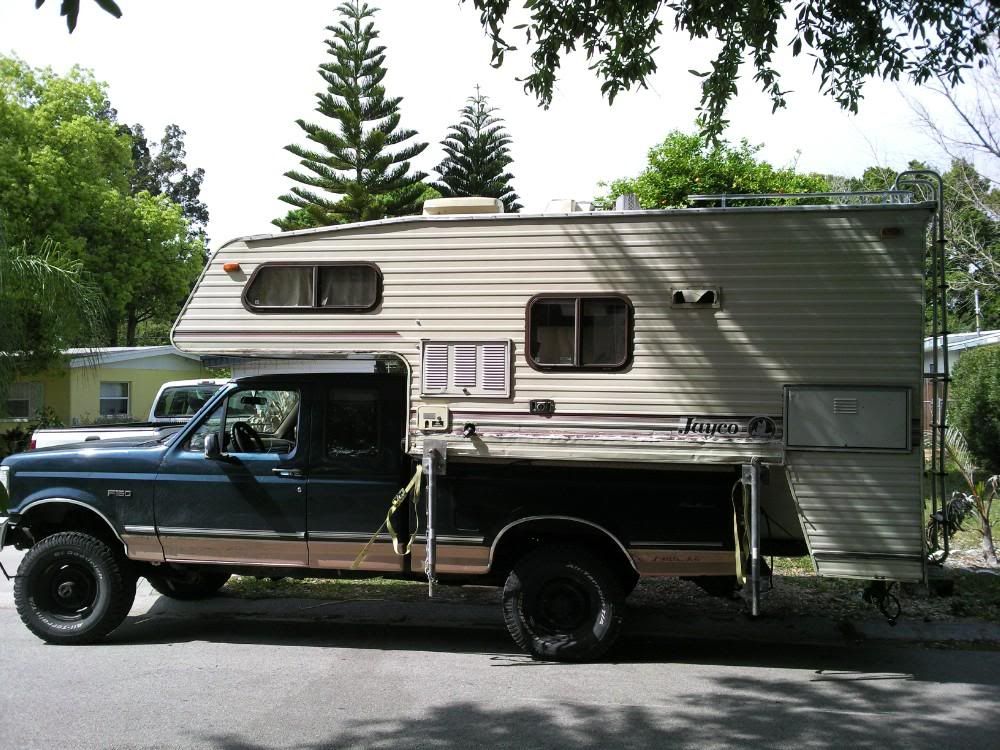 Recently, we picked up a slide-in for the F250. When we get the Early Bronco done we want to go places to play and we can't trailer the EB and pull the pop-up at the same time so this is the best option. I think its like an 87 model, but its real clean and looks great. I was surprised at how much room these things have in them, even has a bathroom, shower & all. I'll try to get a pict of it this weekend even if it is just on stands right now. Heck we haven't even used it yet.