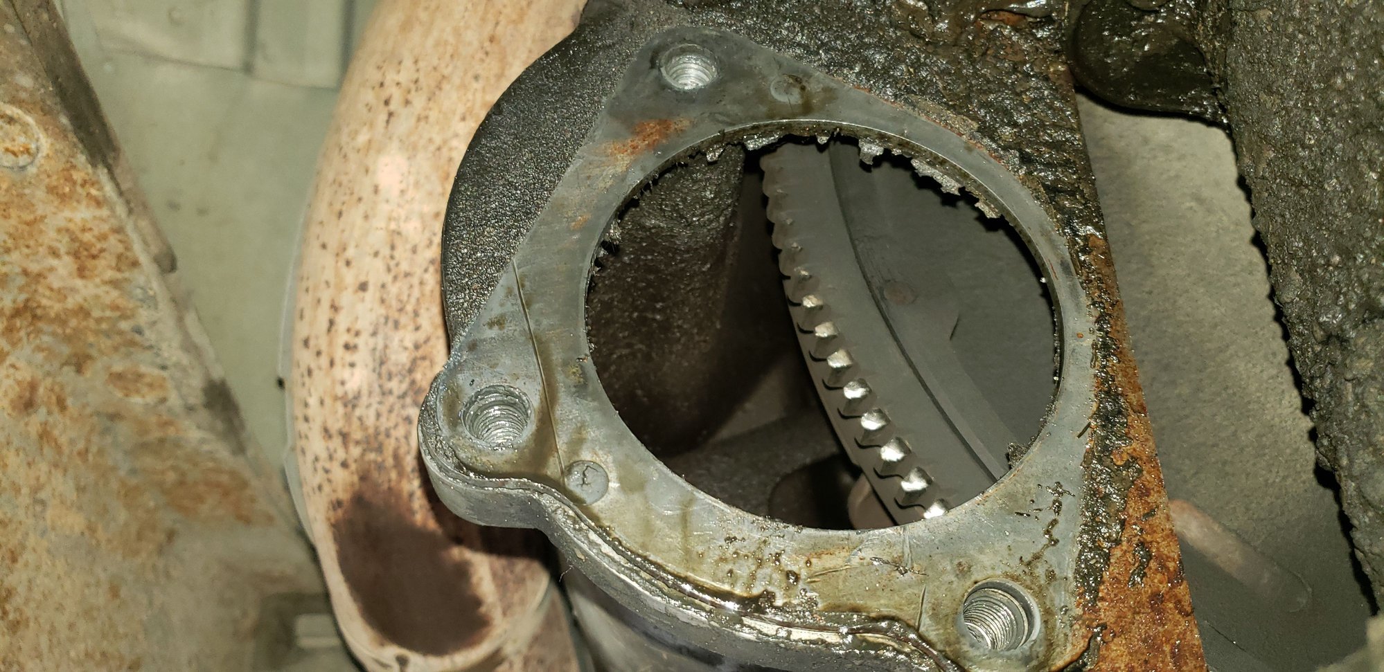 Truck has had problems starting last couple of weeks. Last weekend it would turn over once and then starter would just spin. Pulled the starter yesterday and discovered that it wasn't fully engaging with the flywheel. It stripped about 1/16 to 1/8 inch off about 6 flywheel teeth. Taking the starter in for testing and possible rebuild. Question is can I just install a new starter or do I need to somehow fix the flywheel? See the pics of the flywheel. Thanks for advice.
