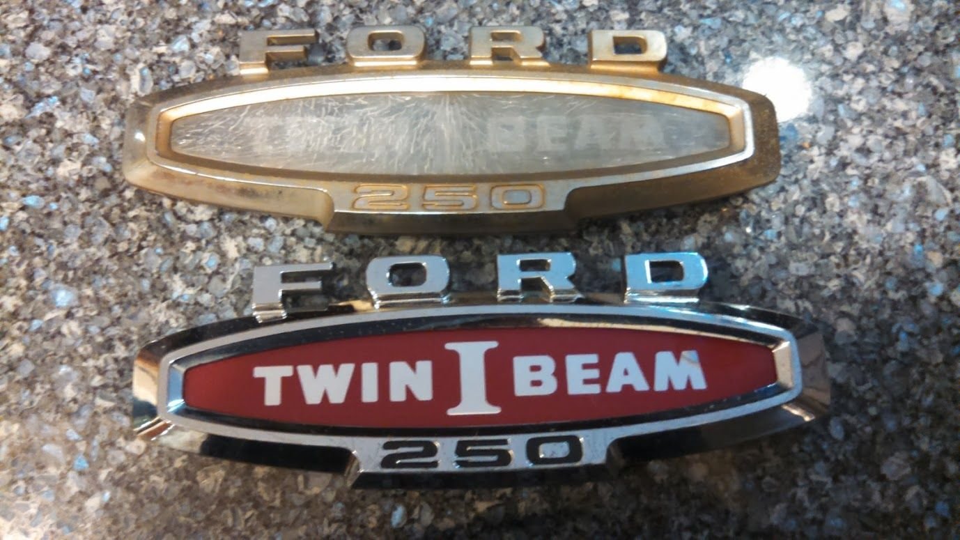 I have a pair of stock emblems that my Dad bought a long time ago to replace the ones on his 1965 or 1966 f100 custom cab (don't remember the year). I have had them for years (Dad has moved on to Ford heaven) and I wanted to save them because I am looking for a truck like his to bring back to life - tan custom cab short box 2wd styleside with v8 and auto (anyone have one they want to sell???) - I only have the emblems - no box - and the mounts look like they must have some metal keeper ring or something that slips over them to hold them to the fender because they are smooth and tapered.