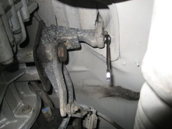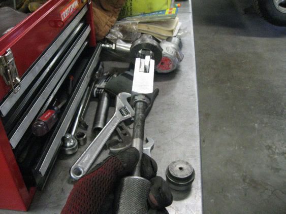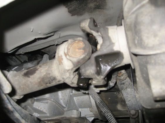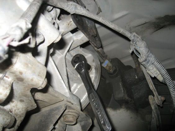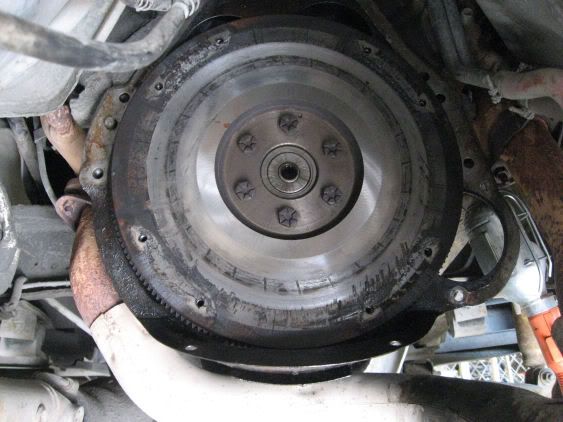 Next, pull that fat bolt out, mine was a 29mm. I did not take the plate off of the trans.