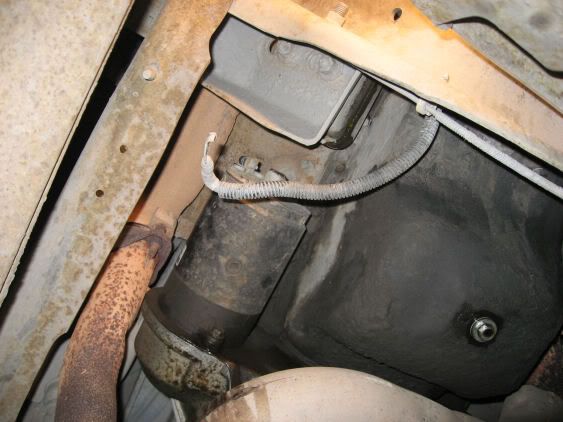 Next, pull the wire off of the starter. Mine was on the passenger side of the oil pan. That bolt was a 10mm on the old starter, the new one I got was a 3/8. I had to replace the starter because the teeth were worn and would spin in place without engaging the flywheel about every 20 starts.