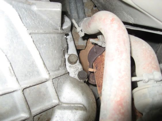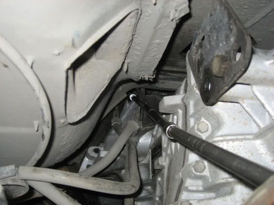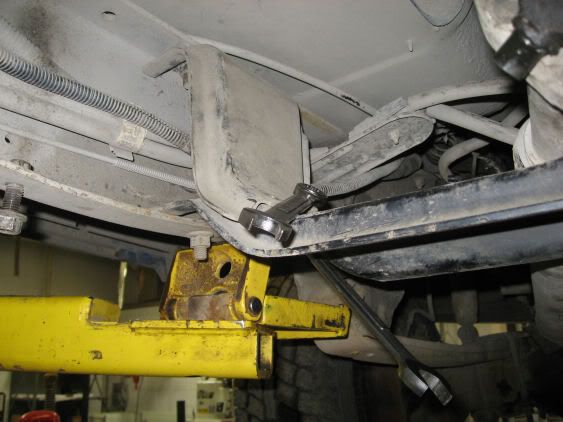 Next, take the gussets out. They pinch the trans mount down on the frame. I beleive mine were 15mm on one side, and 18mm on the other.