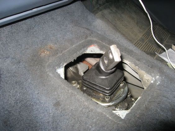 Next I pulled the two bolts out of the transfer case shift lever. Mine wer 8mm. Just push it up through the floor.