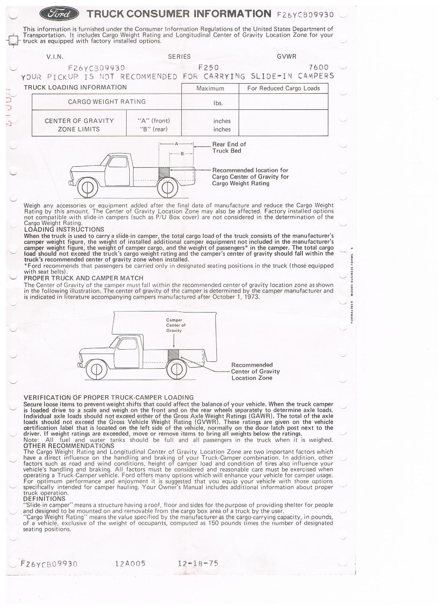 The camper Special Package was a group of options bundled together with minimal suggested equipment for carrying a slide in. There is nothing in the Camper Special package that could not be ordered on a normal F2/350 except for the special wiring harness and pigtail. All the other chassis equipment was widely used across the 73-79 platform. There is nothing particularly special or unique chassis wise with the Camper Special package.