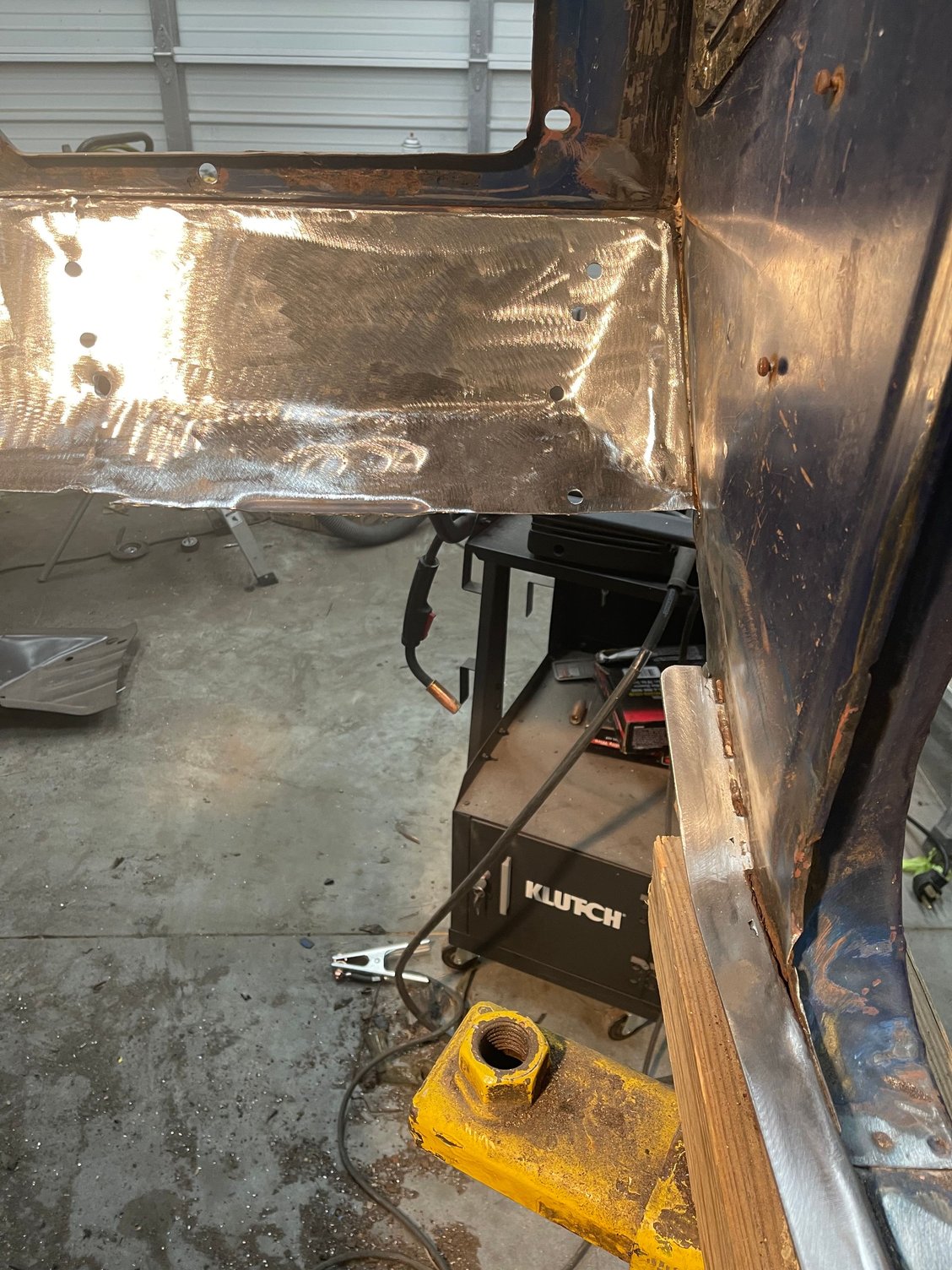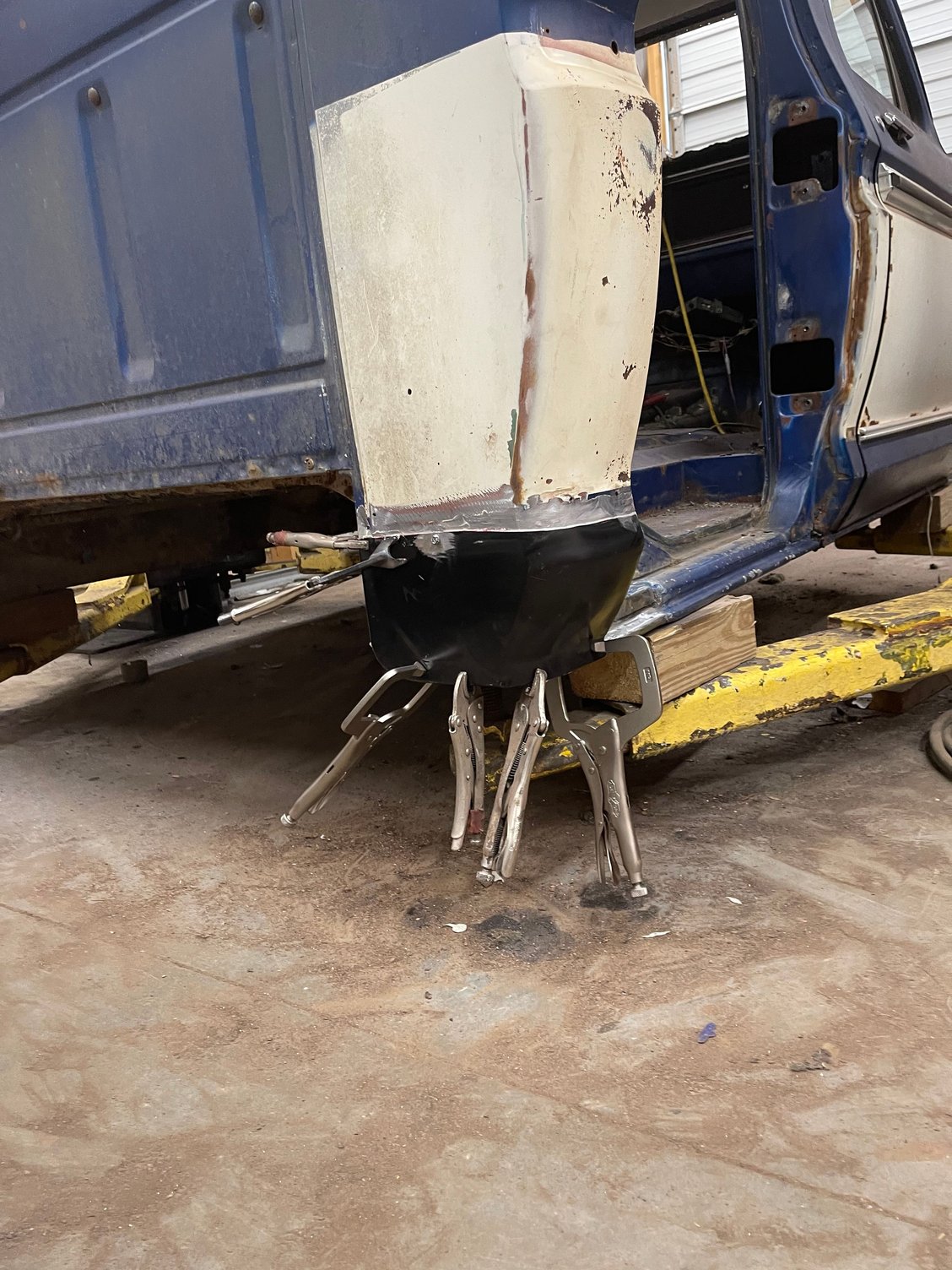 I had rust in the corners of both sides at the rear of my cab. I cut out a bigger area, and sprayed the inside with Rustoleum rust inhibitor and let it sit for 24 hours, per the can. After that, I took expanding foam from the hardware store and sprayed it inside to fill up the void and let that cure. Then I cut away the foam and sanded it so I had a uniform surface with the surrounding area, then took used a Bondo fiberglass kit to make a patch across the surface, followed up with Bondo Glass putty, and finally a smoothing coat of regular ol' Bondo, and then sprayed primer over the area. Because I didn't want to hassle with matching paint, I opted to scuff the paint along the entire lower portion of my truck and I used spray-on bedliner along the bottom edge of the truck like you see some people do with Rhino or Turbo liners. Gave it a matte textured look, and to everyone else, it was just an aesthetic choice. Been about 9 months so far, and I haven't seen any rust bleeding through the paint.