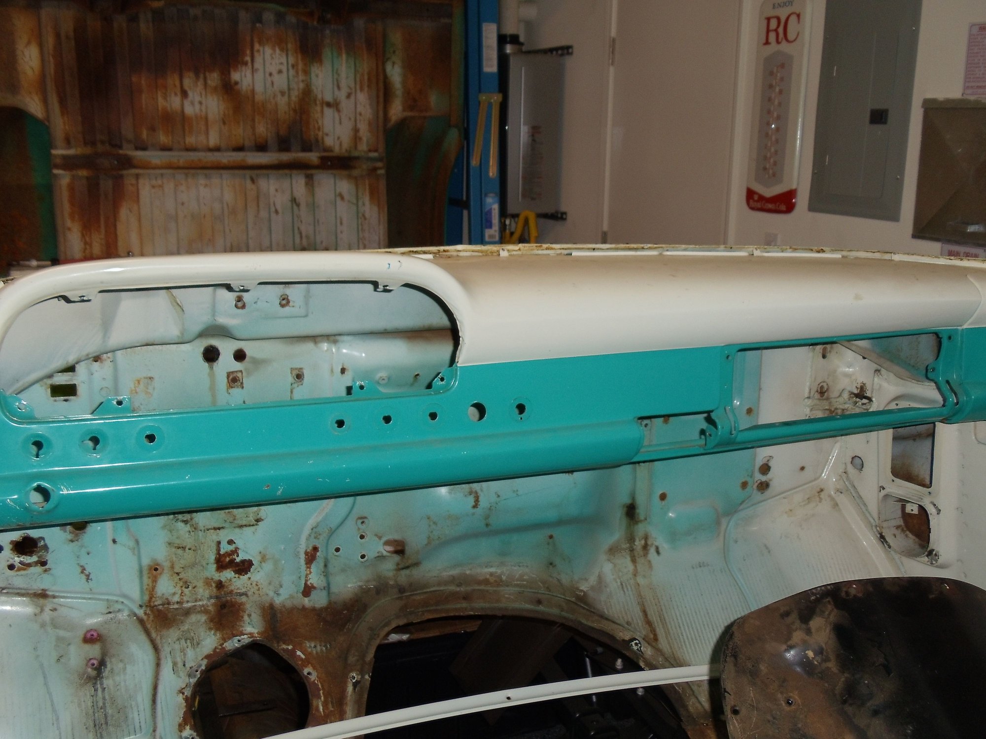 Cab stripped of all parts and ready for dipping. Interior paint is 1960 factory original.