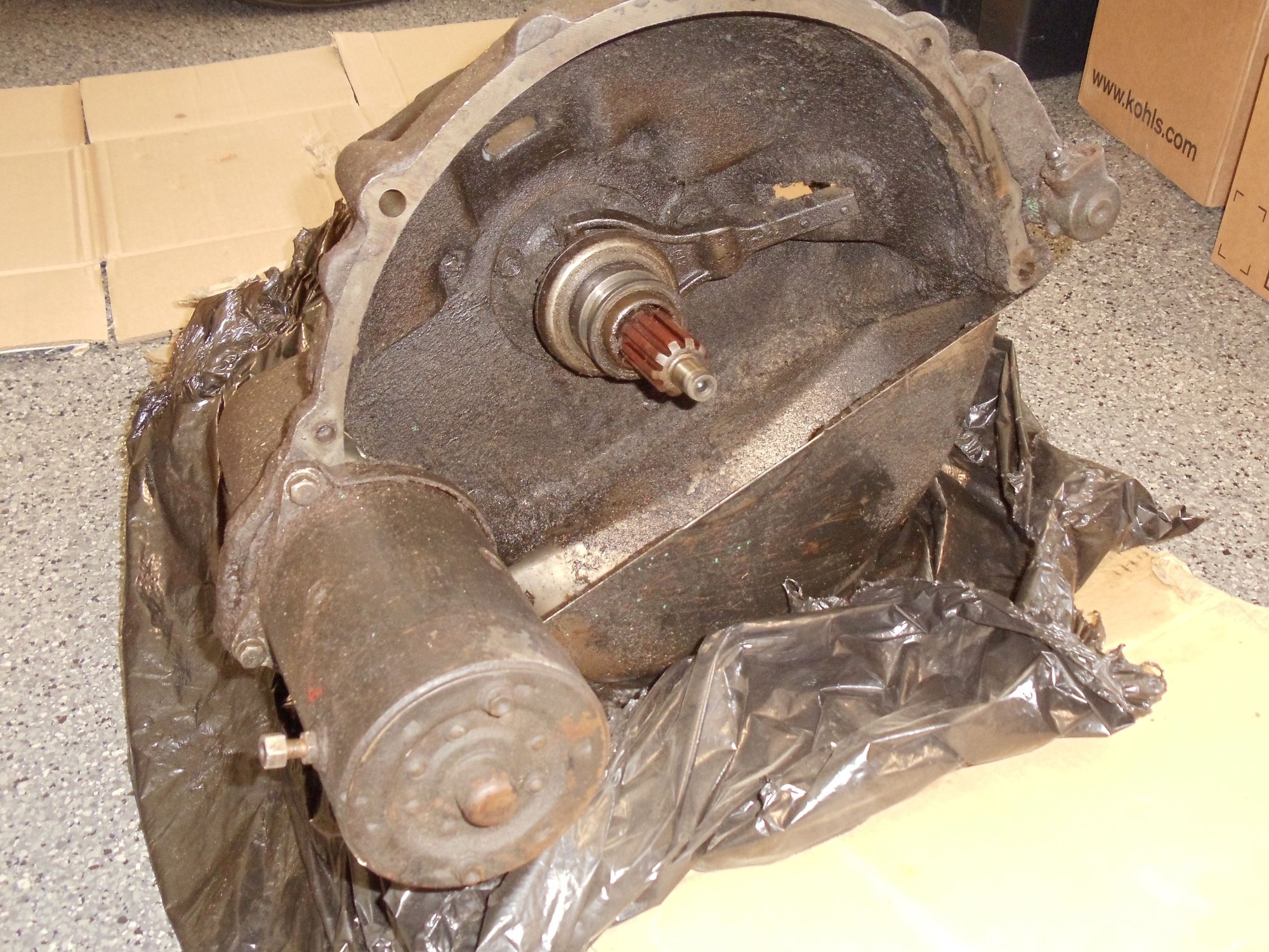 -Separated starter, transmission, and misc. attaching parts from bellhousing