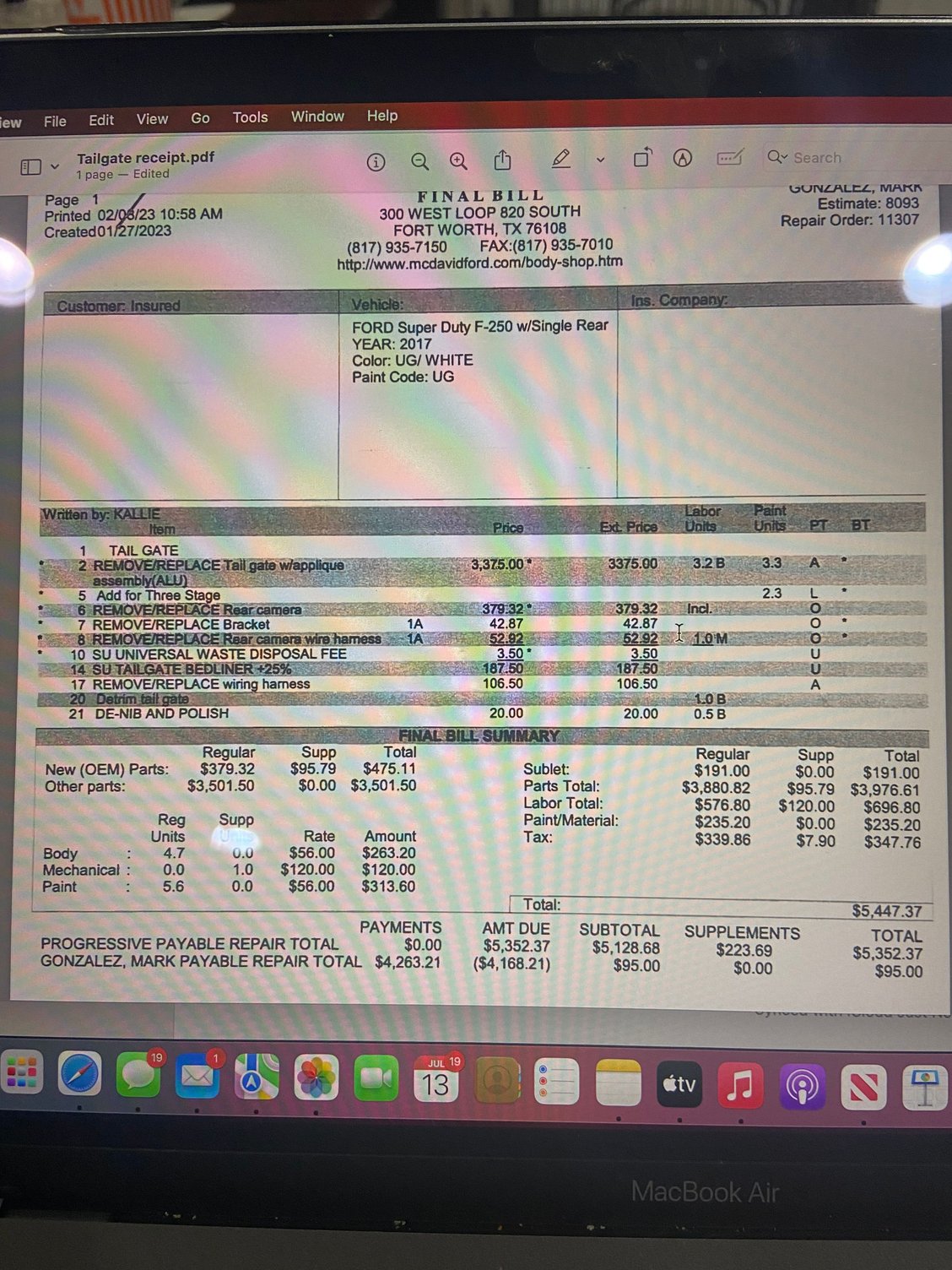 Tail gate is 100% new and never installed complete with camera, drop step, bed liner. This thing is perfect.
