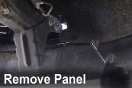 - Using a flathead screw driver or something similar, remove the splash guard covering the radiator from underneath to gain access to the radiator drain valve.