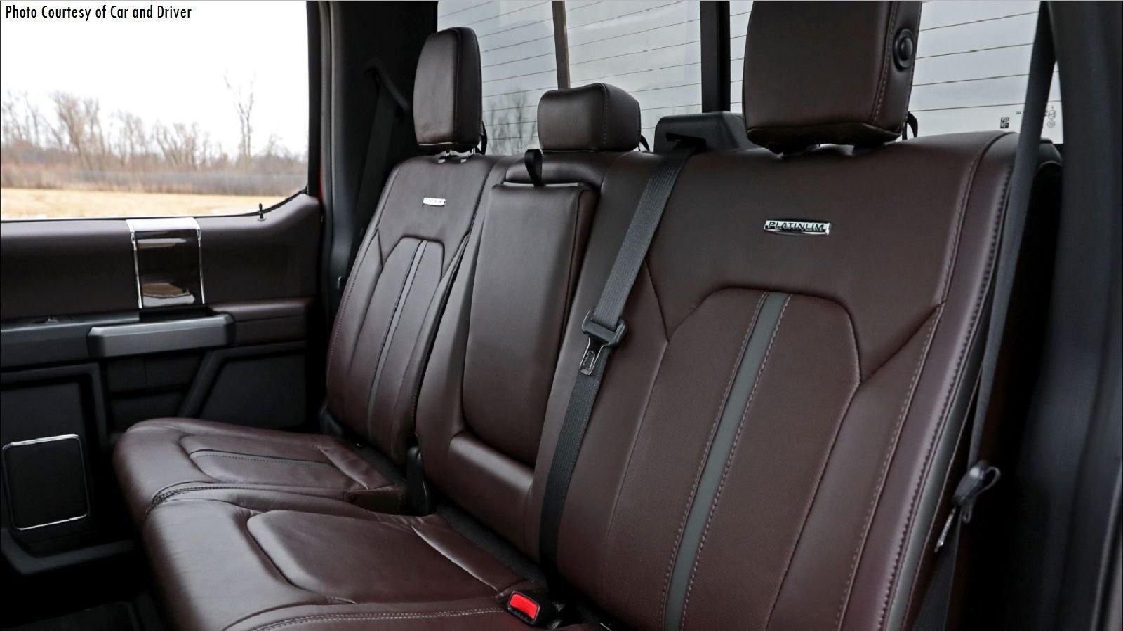 The back of the F-250 Platinum is less of a rear seat and more of a lounge. In fact, if I was a celebrity headed to a noteworthy event, I'd ditch the limo and ask the chauffeur to drive me in the Platinum. From the backseat, I could charge my phone using either the cigarette lighter or a 110 volt AC outlet. I'd ask the driver to hook my phone up to the infotainment screen featuring Sync 3 and listen to my music library via Apple Carplay. To ensure I was red carpet ready, I'd lean back and relax in the 43 inches of rear legroom while the heated seats fade away any lingering stress.