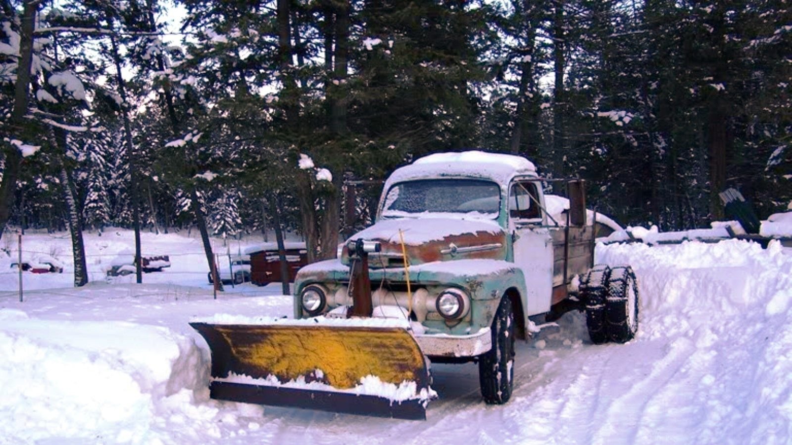 This 1952 Ford F6 two-ton truck is from the first generation of the F-series, the granddaddy of them all. Ironically, this truck clears the snow without the aid of fancy traction control, a limited slip differential, or even four-wheel-drive. Just latch up the four sets of chains on the dual rear wheels, dump 1,000 lbs of sand in the bed, and go to town. These trucks typically had really low rear end gears to be able to haul heavy loads, and it may need them to push all that white stuff out of the way with a flathead V8 motor, or maybe this has a Lincoln Y-block like some of the F7 trucks.