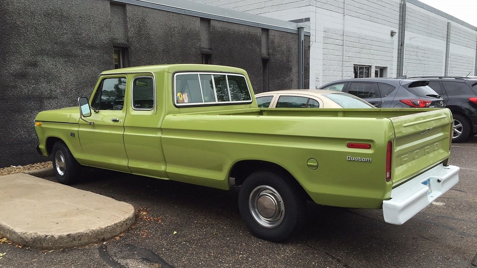 If you like your green trucks with a little extra length to them, you can't go wrong with ericthor's 1975 F-100 Supercab long bed. Just look at it, sticking roughly ten feet out in the middle of the road while parked. Pretty sure the econobox parked next to it would fit in the bed.