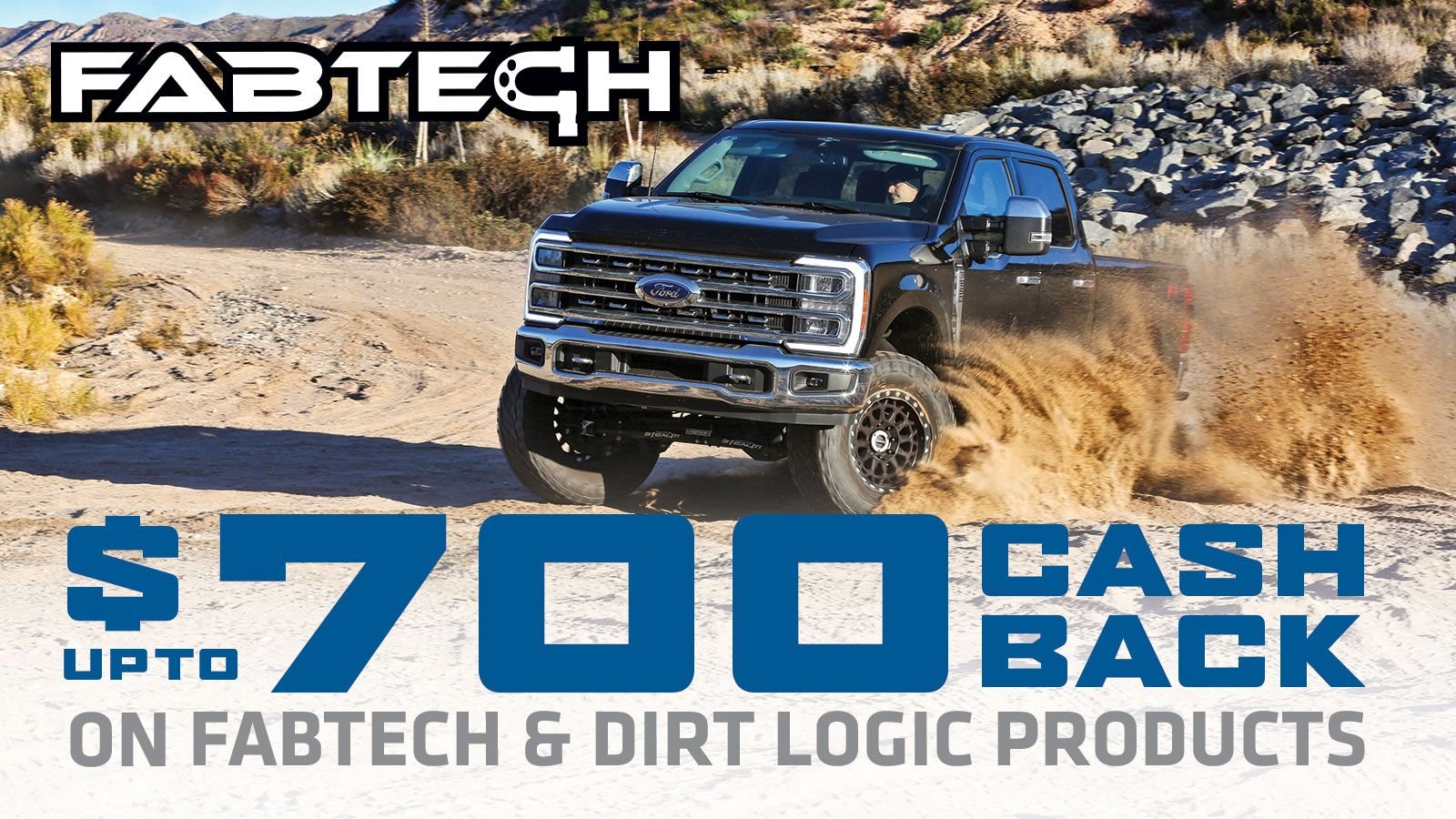 Here's the truth. Fabtech is a Ford Truck Enthusiasts sponsor. BUT even if it wasn't, we'd be featuring its products on a guide like this. And right now, Fabtech is offering up to $700 in cashback rebates on Fabtech suspension components and Dirt Logic shocks. Here are some killer products that we'd love to install on our rigs --