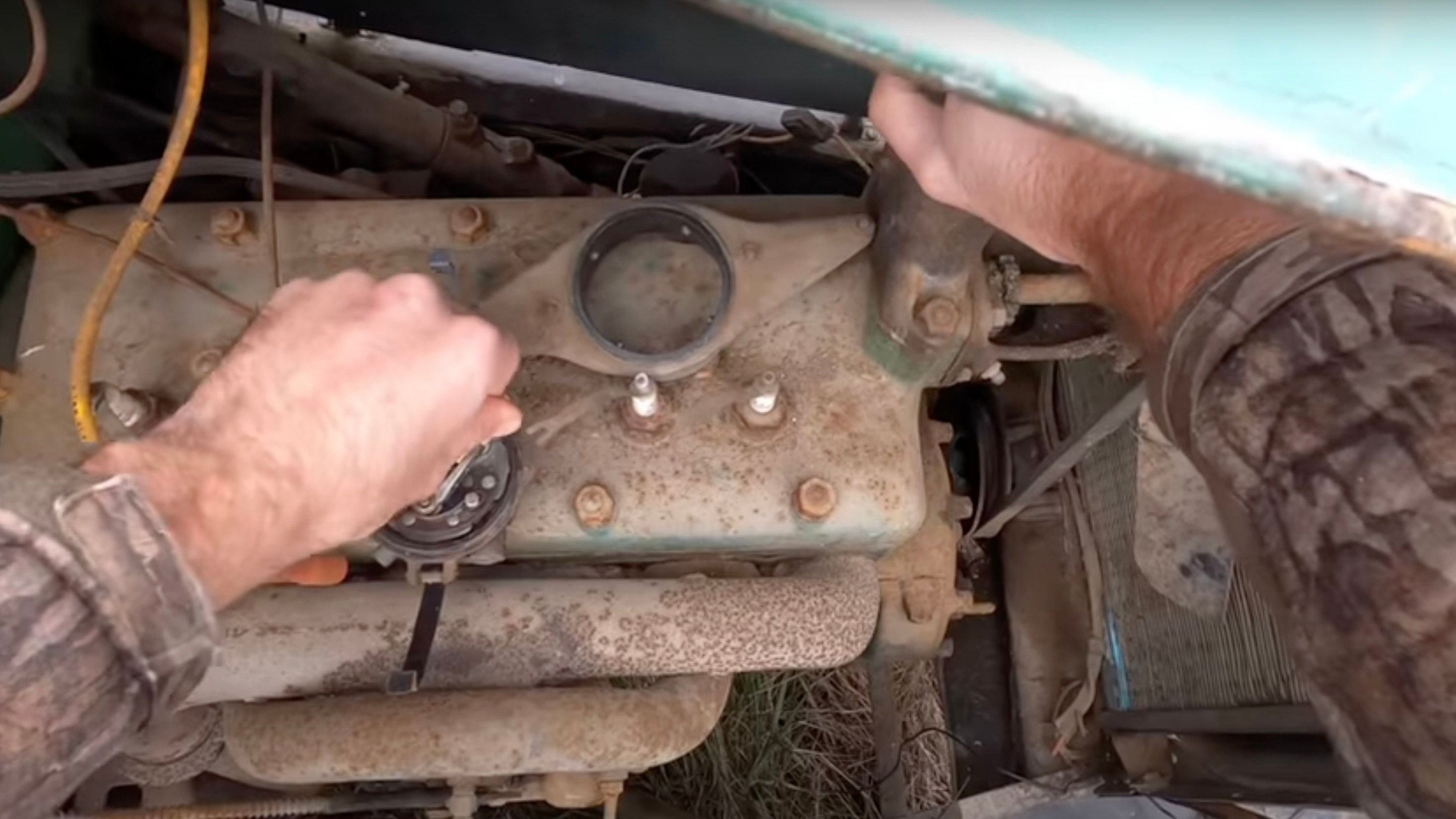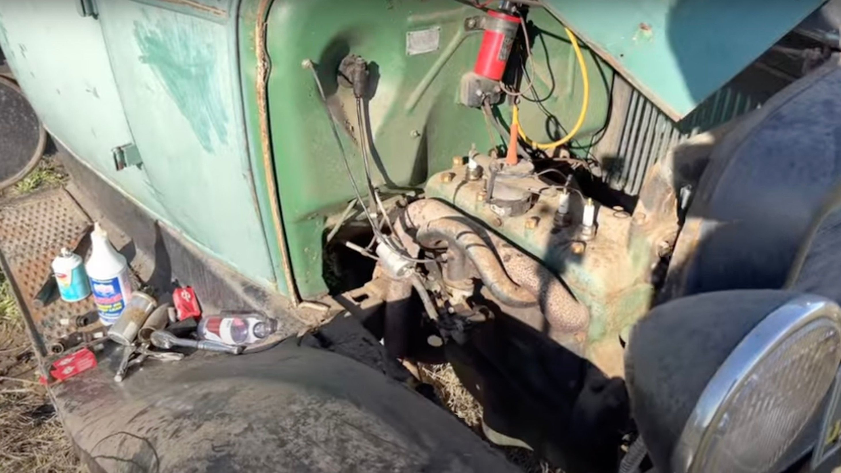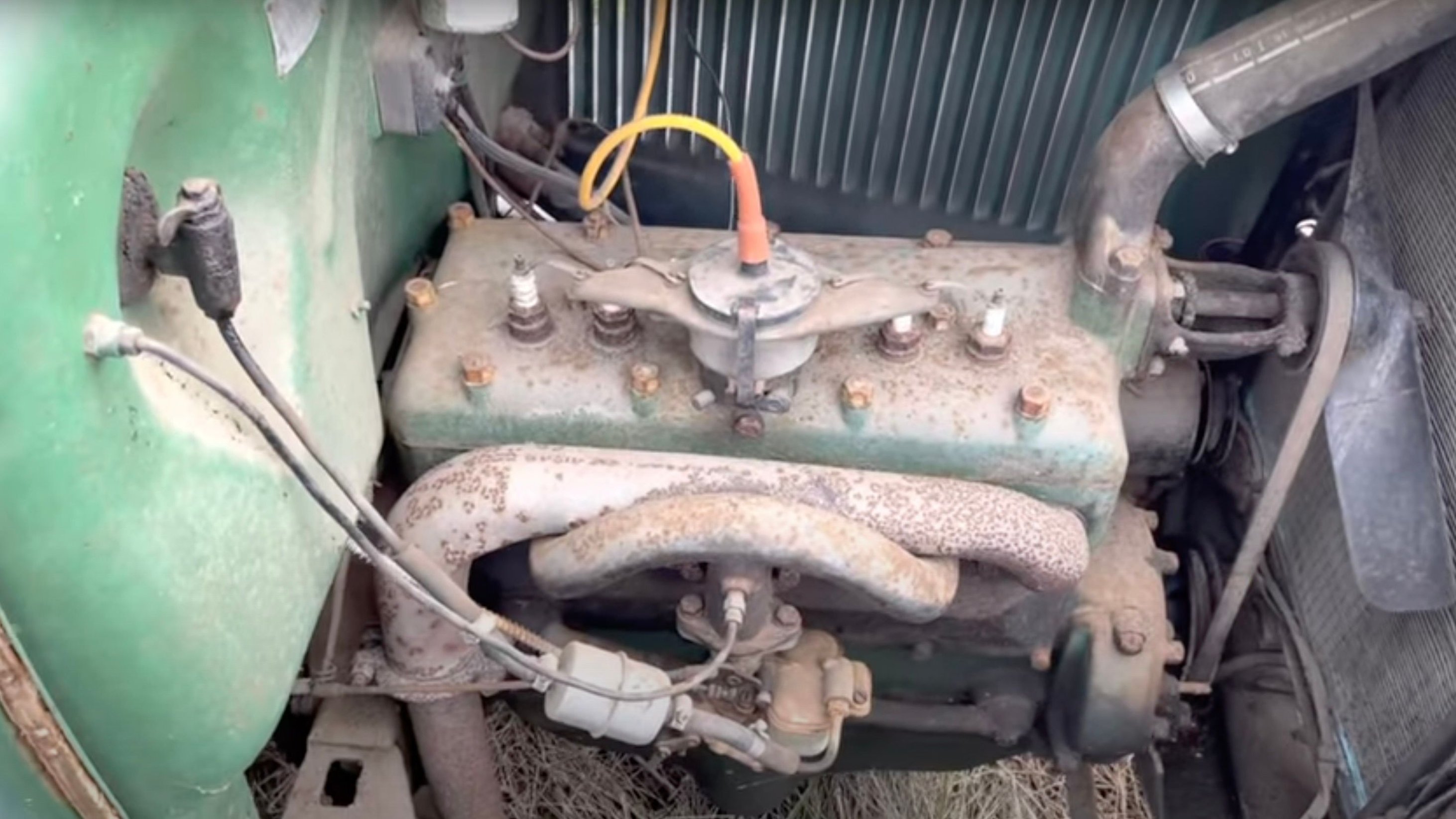 The next question is, will it run? Our host spends a little bit of time tinkering around with the original four-cylinder powerplant, and that's all it takes to bring it roaring back to life. It's a pretty amazing feat and a true testament to how reliable these old trucks really are.