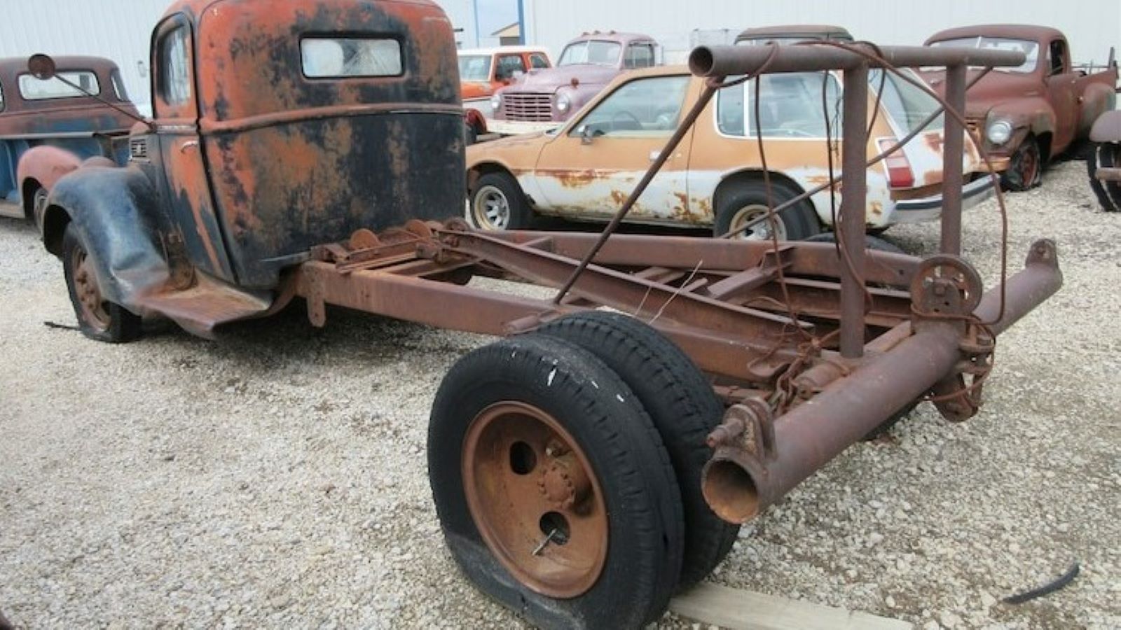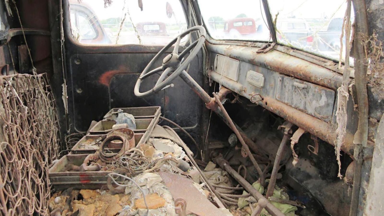 Aside from a few dents and dings and a rotted-away interior, this 1941 Ford is a prime candidate for a restoration or hot rod project. Part of the front grille is missing, but the cab and front clip are otherwise intact and in solid shape.