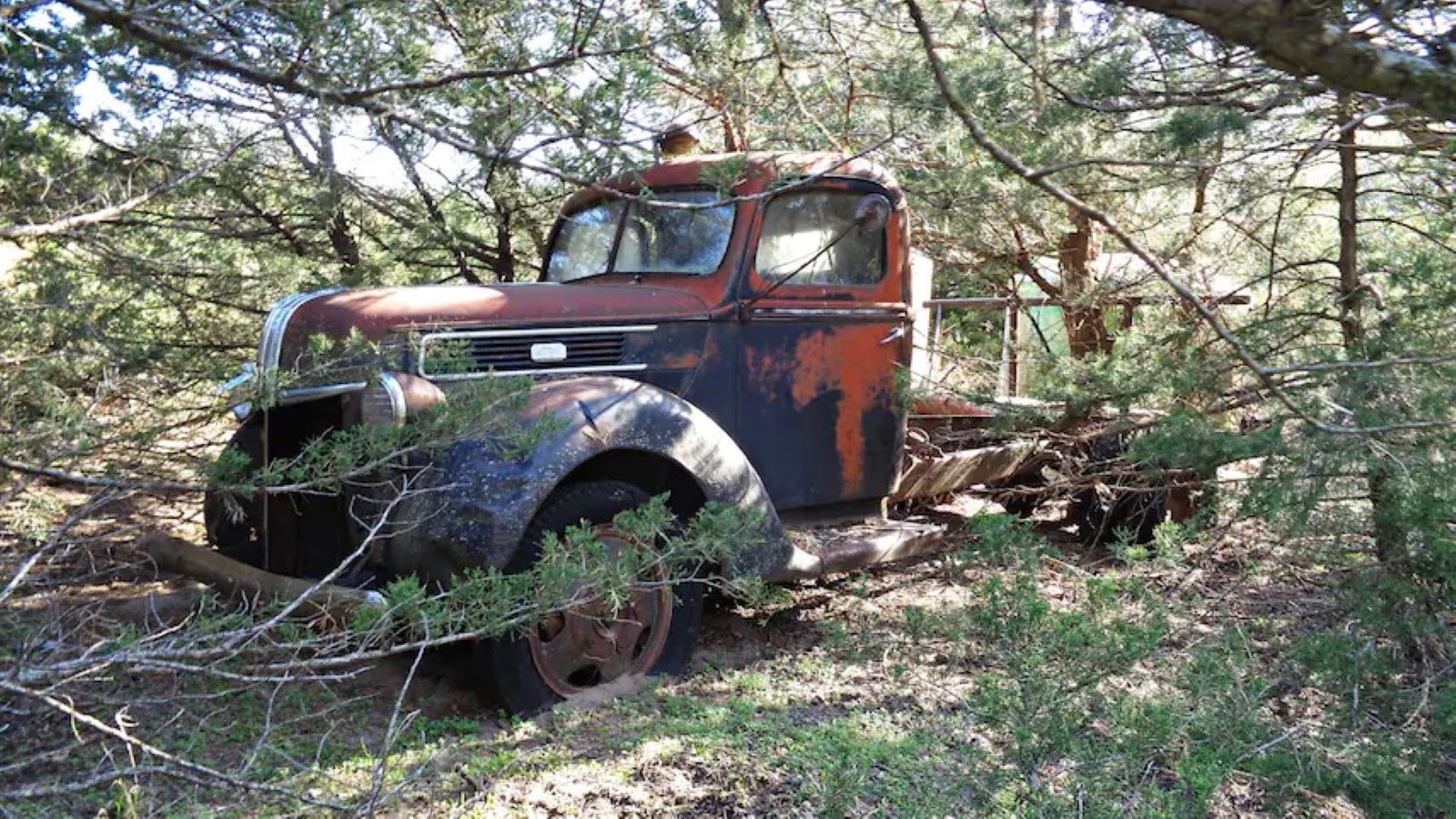 A season barn find hunter recently struck gold when he found this cool old Blue Oval hauler in the woods.