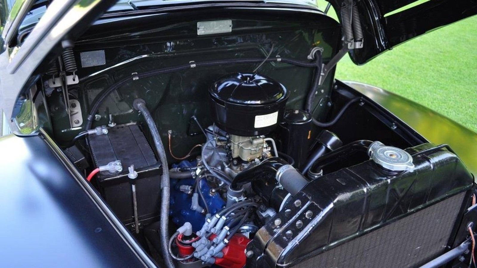 On the inside, this F-47 has been treated to new carpet, floor mats, seat upholstery, visor, headliner and door panels, as well as a restored original gauge cluster. Interestingly, the rare original radio remains but no longer works after the 12-volt conversion.