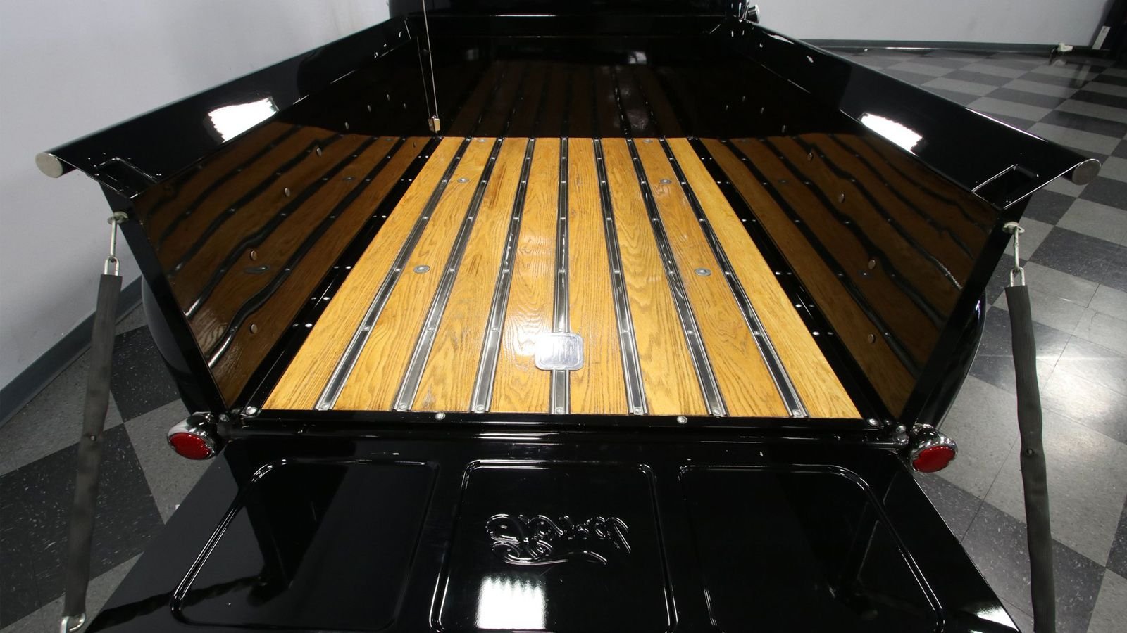 And that same high level of craftsmanship is visible all throughout, especially back here in the truck's bed. The glossy lumber used here adds an old school element, which is a nice contrast from some of the modern features of the exterior, such as the LED lighting in the front and rear. This F-1 has been driven just over 2,000 miles since the rebuild was completed. More photos and info on this beauty can be found on the Streetside Classics website.