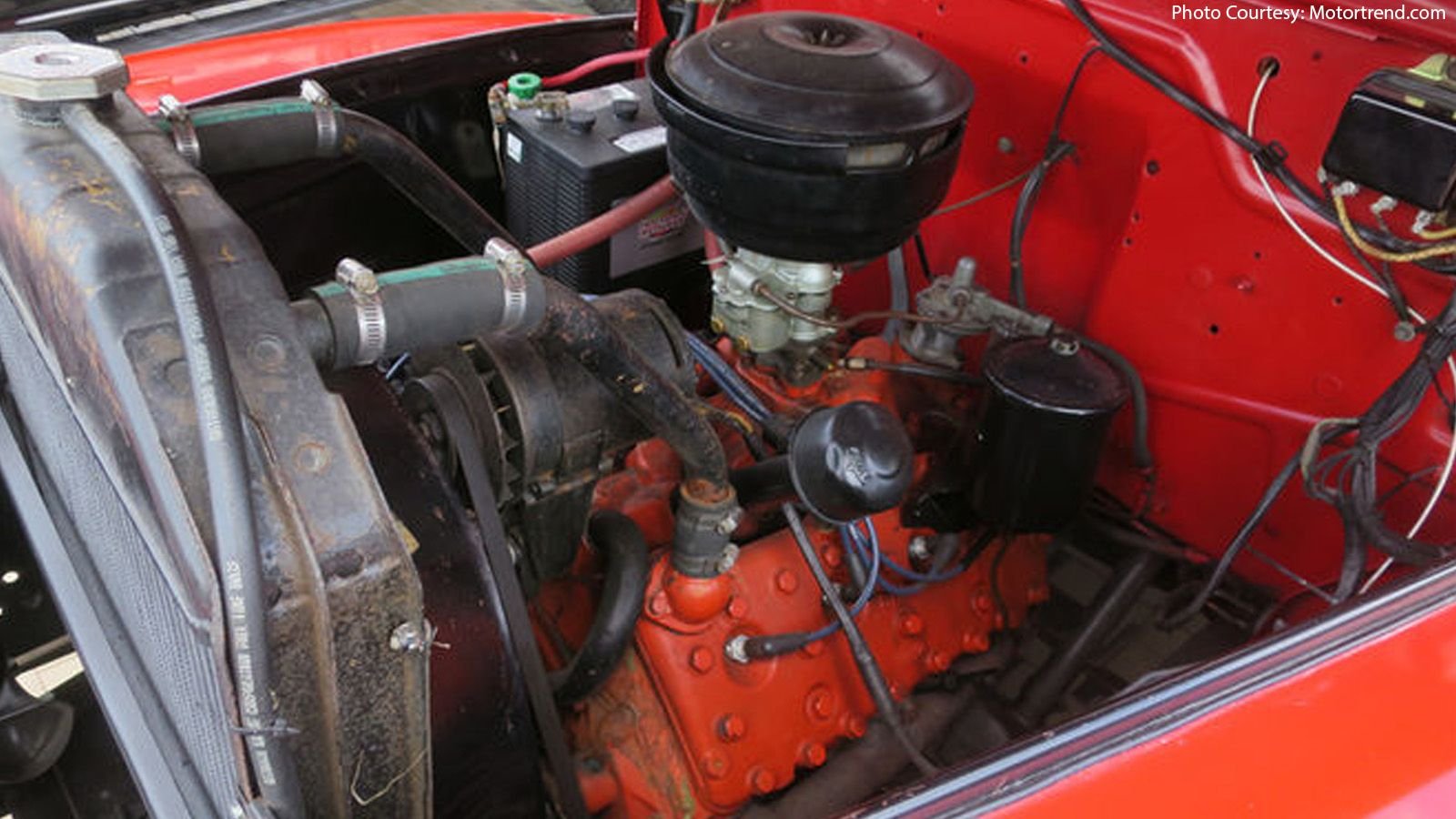 The 1950 F-1 models gave their customers a peace of mind, and even if the battery died on them, the truck will always have a solution. When looking at the lowest bar of the front grille, you will notice a hole in the radiator support, which is a crank that allows you to crank the pulley and get your truck started, even with the battery dead. You just need to crank it right and watch it fire up.