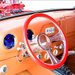 The body is bathed in Glasurit Inferno Red Pearl and accentuated by pale gold ghost flames which are just barely visible up close. In the back, beautiful wood trim accents the bed. But, even cooler is the electronically-controlled tilt front-end which was entirely custom-built using a steel nose and fiberglass hood. One thing is certain, this is one wicked ride.