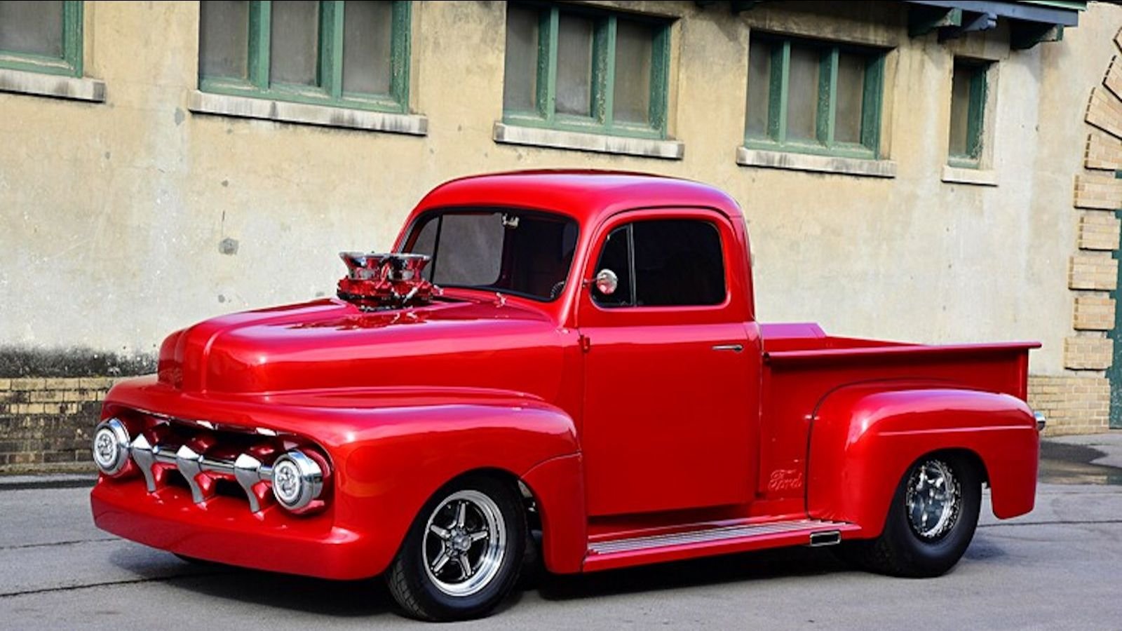 Furthermore, the F-1 houses custom iron heads, a BDS intake, Speedway Motors intake trumpets, and twin Holley 950-cfm carbs. But the best part... a beefy 8-71 supercharger.
