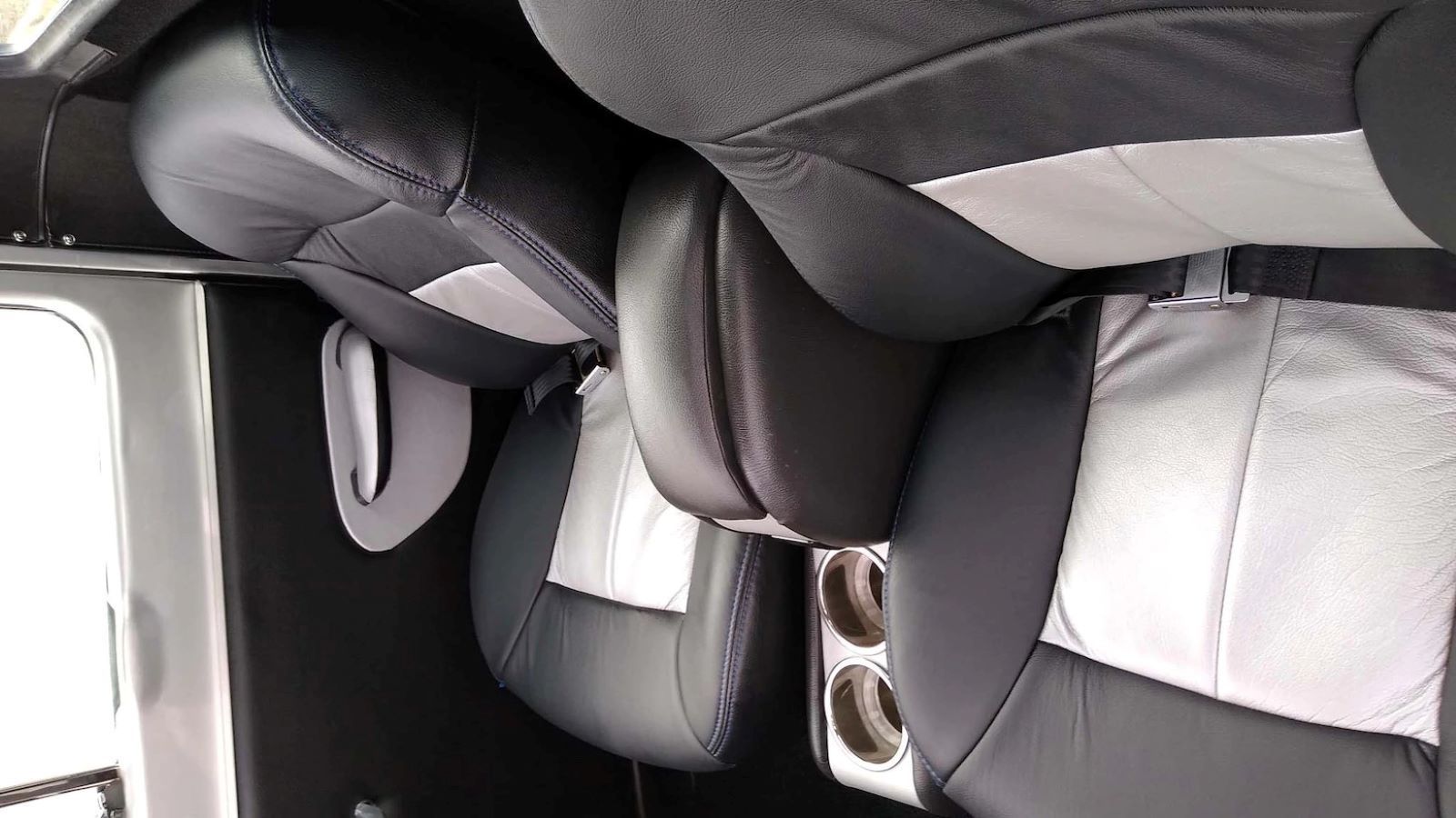 The interior has been completely redone as well, with short-back bucket seats finished in a two-tone black and silver upholstery. We can also spy some custom door panels and a slick center console, which has a couple of cup holders in it for those hot cruise nights out on the town.