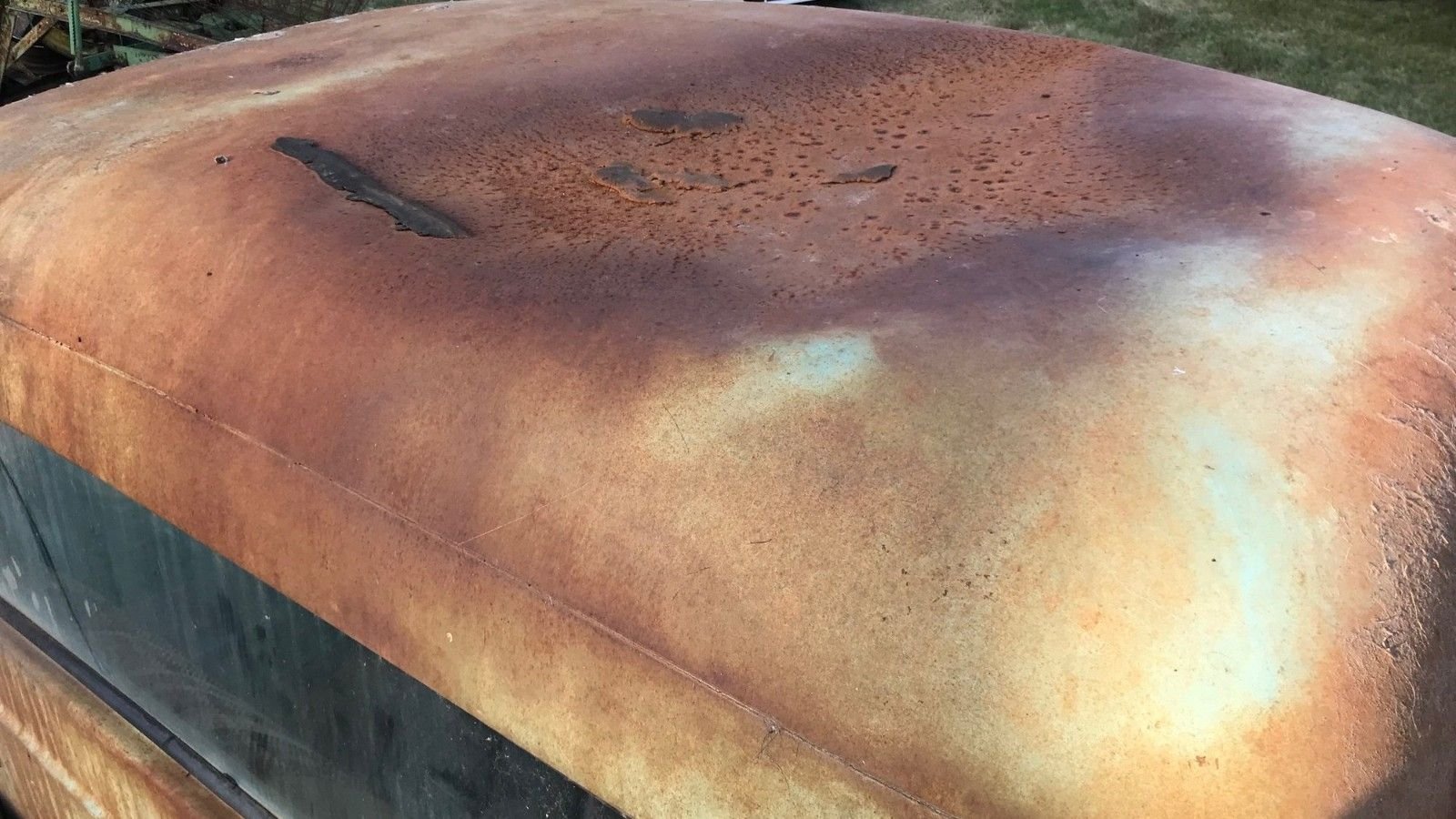A little closer inspection revealed a small rust hole in the driver's cab corner and the driver's side running board. The roof was also badly dented in, but 8pack was able to roughly bend it back into shape.