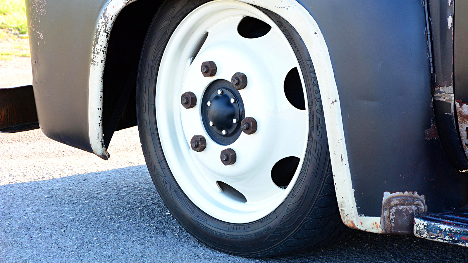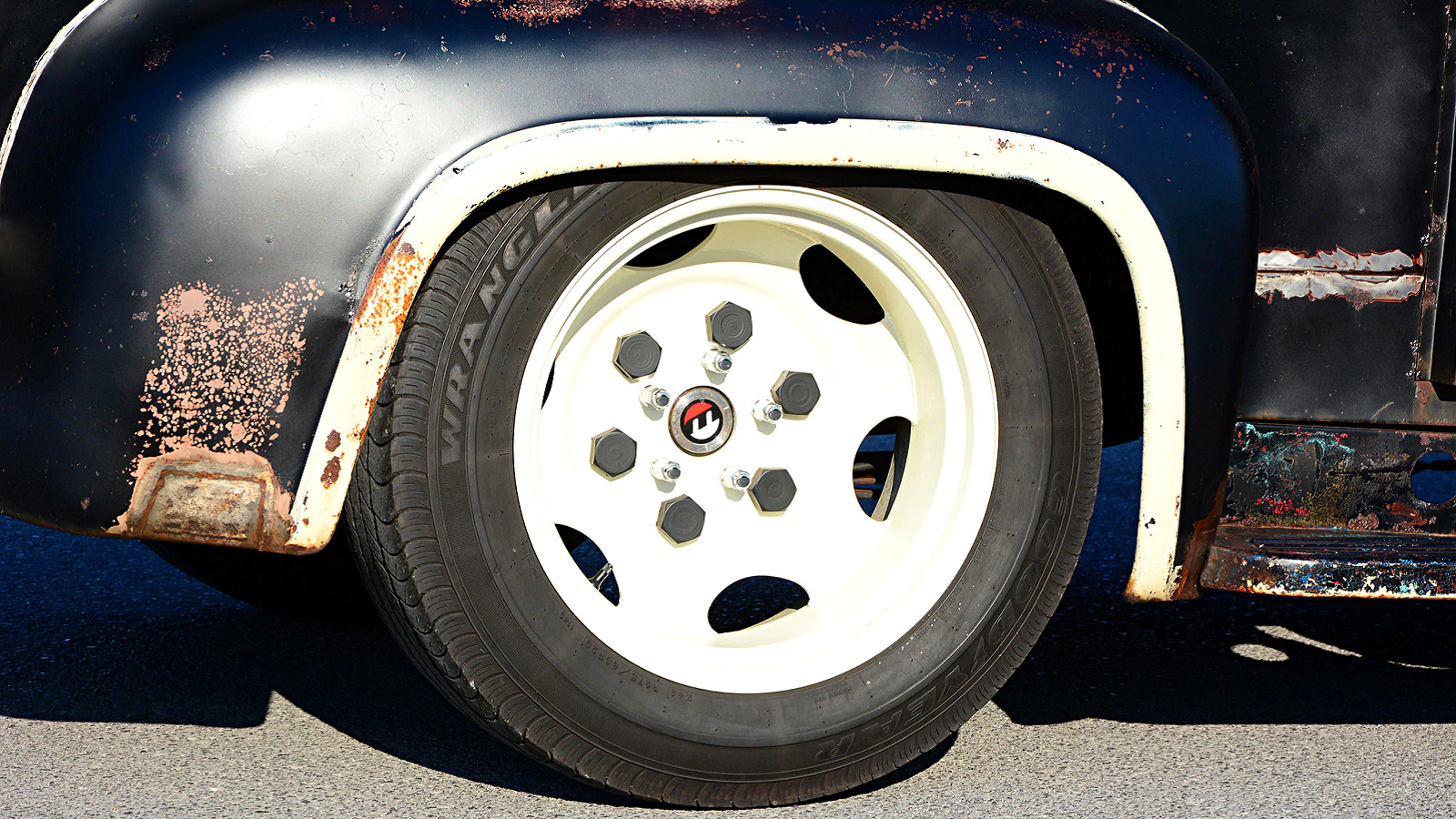 For starters, you won't find any shiny new chrome or perfect paint job on the outside. Just a whole lot of patina and, interestingly enough, some massive vintage commercial truck wheels. That look alone makes this F-100 wholly unique in a cookie-cutter world, but there's much more to this story than what meets the eye.