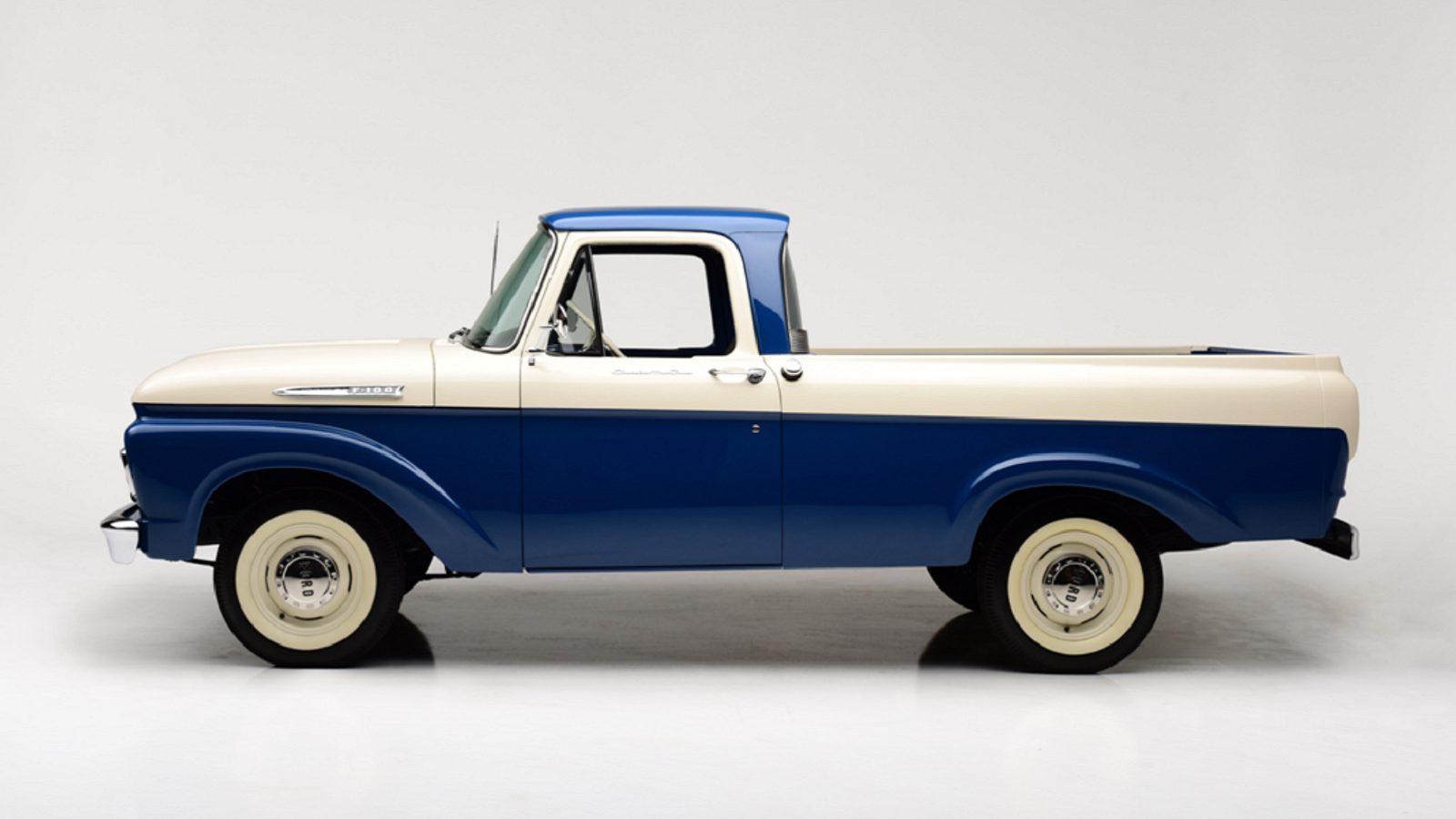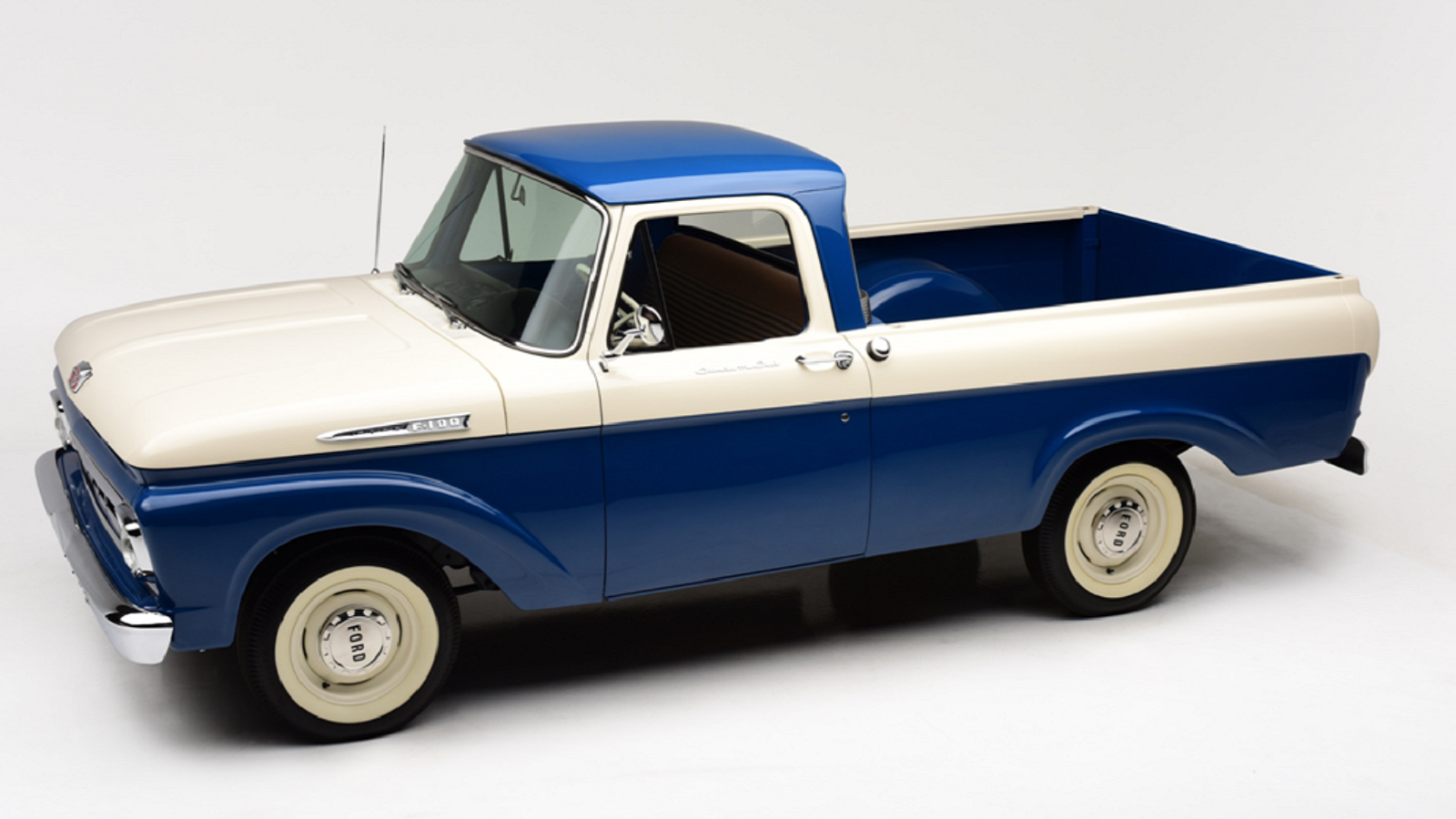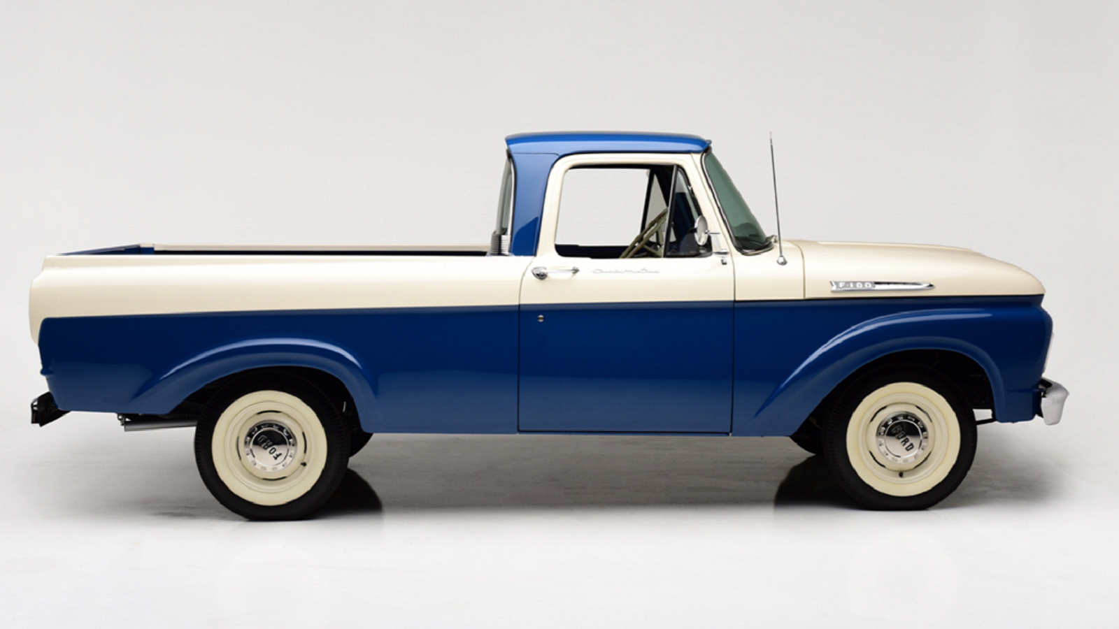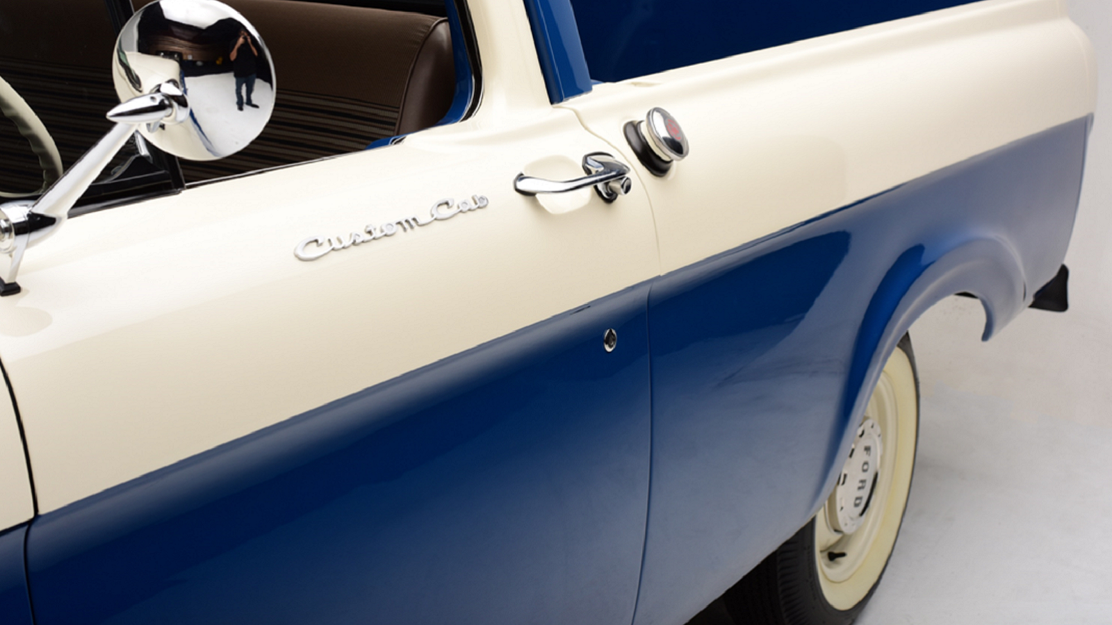 This gorgeous F-100 also sports perhaps the ultimate color combo - Academy Blue and Corinthian White. Those beautiful hues perfectly accent the unique lines of this unibody pickup, which only adds to its appeal.